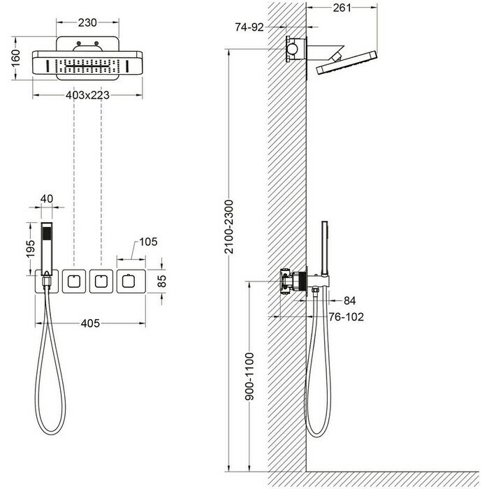 | Дополнительная информация | размер верхнего душа 40,3x22,3 см |