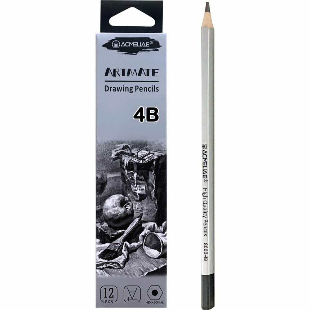 Карандаш чернографитный Acmeliae 4B шестигранный корпус серебряный (8000-4B EAN)