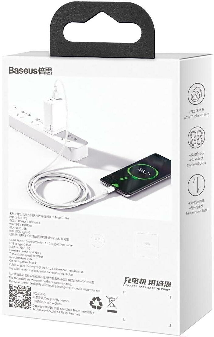 Модель: Superior Series Fast Charging Data Cable USB to Type-C 66W 1m