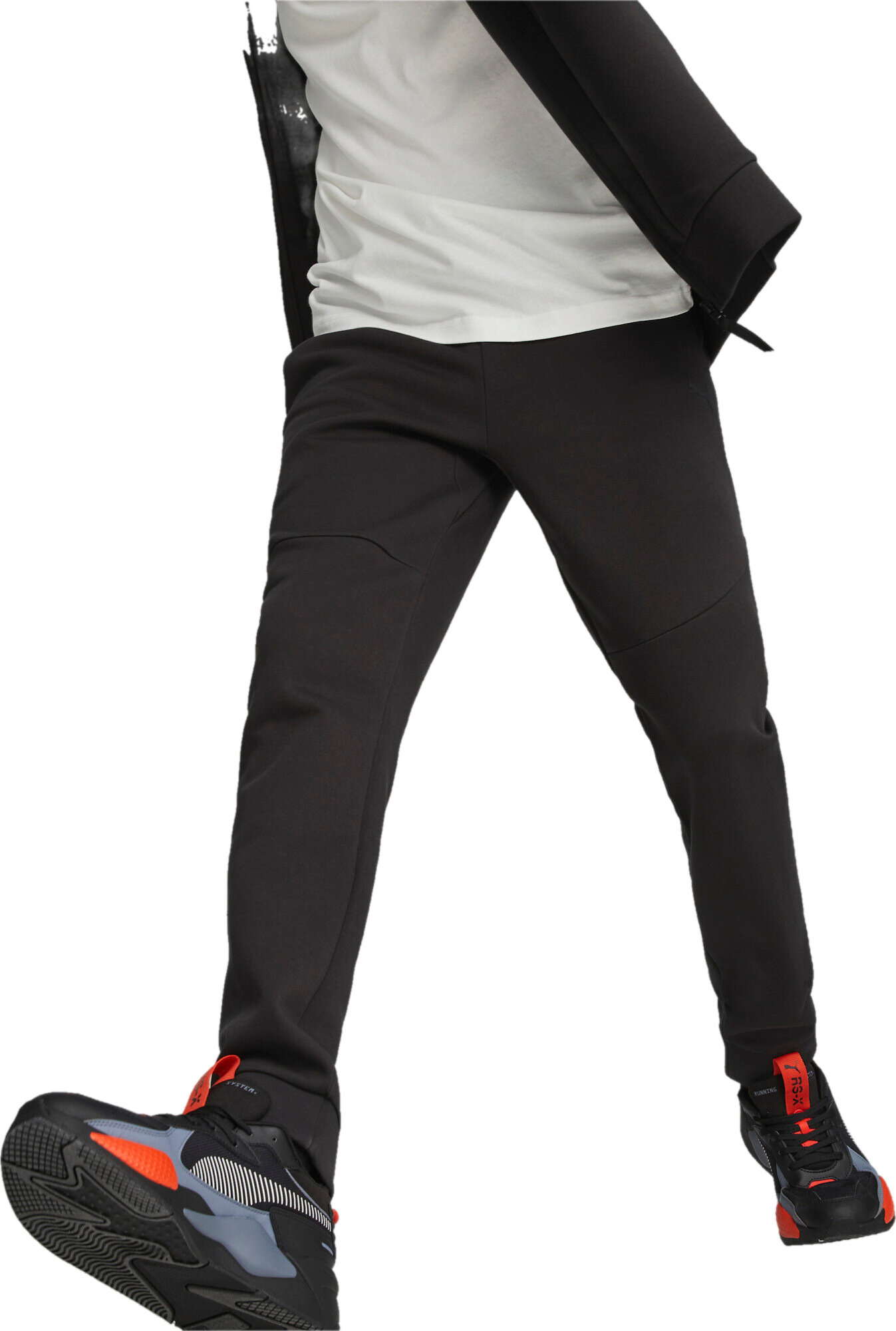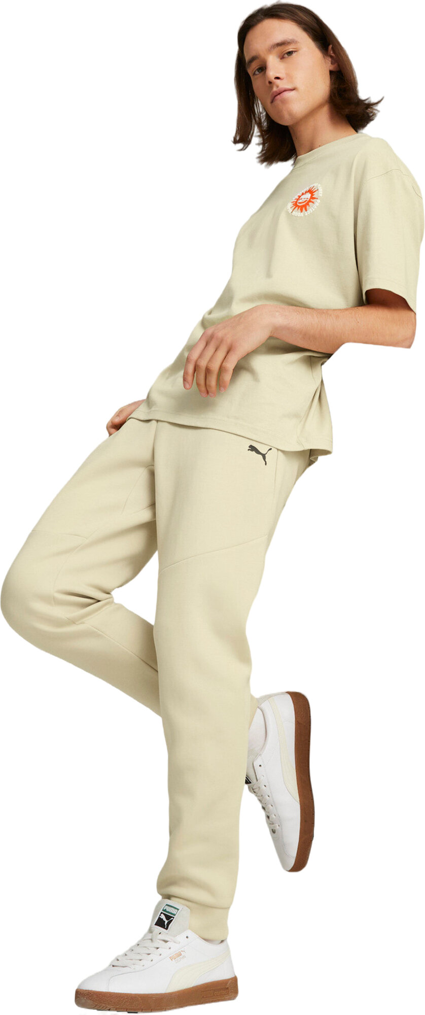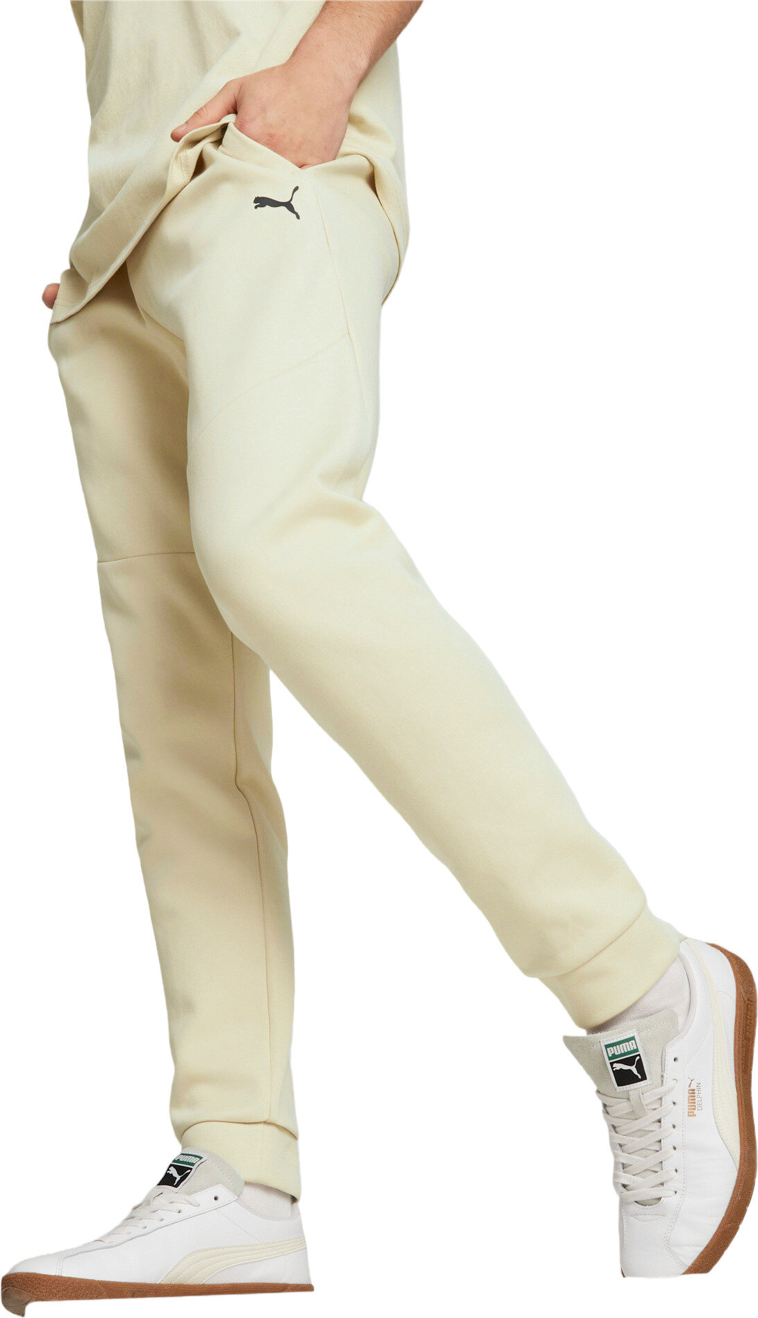 Брюки PUMA созданы из мягкой хлопковой ткани, поэтому хорошо пропускают воздух. Комфортная посадка обеспечивается за счет эластичного пояса на шнуровке и резинки на щиколотках. Для хранения разной мелочи есть пара врезных карманов.