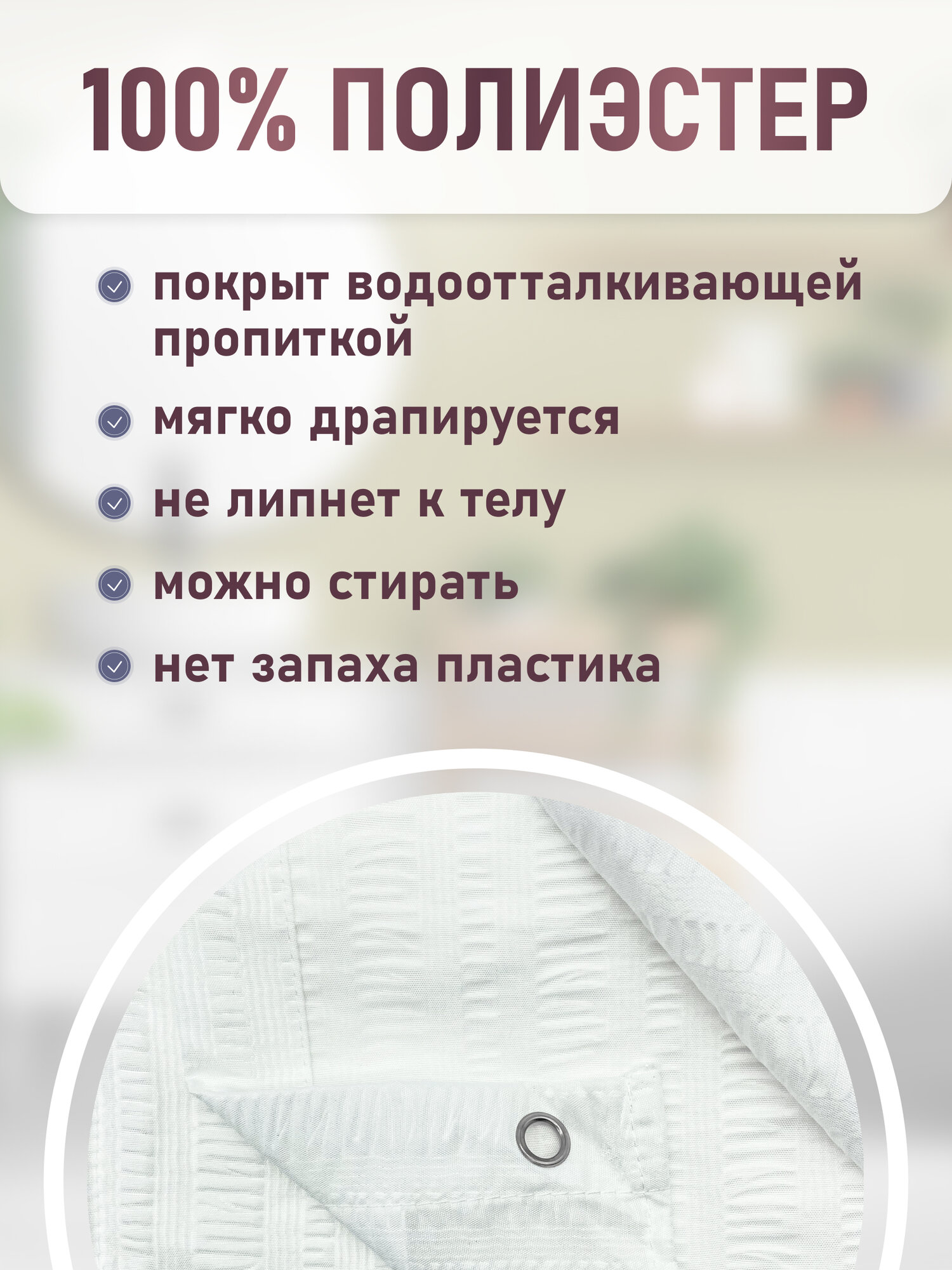 **Штора Lemer New Scandy** — стильный и практичный аксессуар ванной комнаты. Он не только предотвратит разбрызгивание и попадание воды на пол, но и создаст ощущение уединенности, что важно в помещениях с совмещенным санузлом. Штора изготовлена из полиэстера, поэтому она приятна на ощупь, не мнется и не выгорает на протяжении длительного времени. Во время приема душа ткань не слипается. Изделие можно стирать при температуре не выше 30℃. Штора крепится к карнизу с помощью колец (в комплекте не предусмотрены).