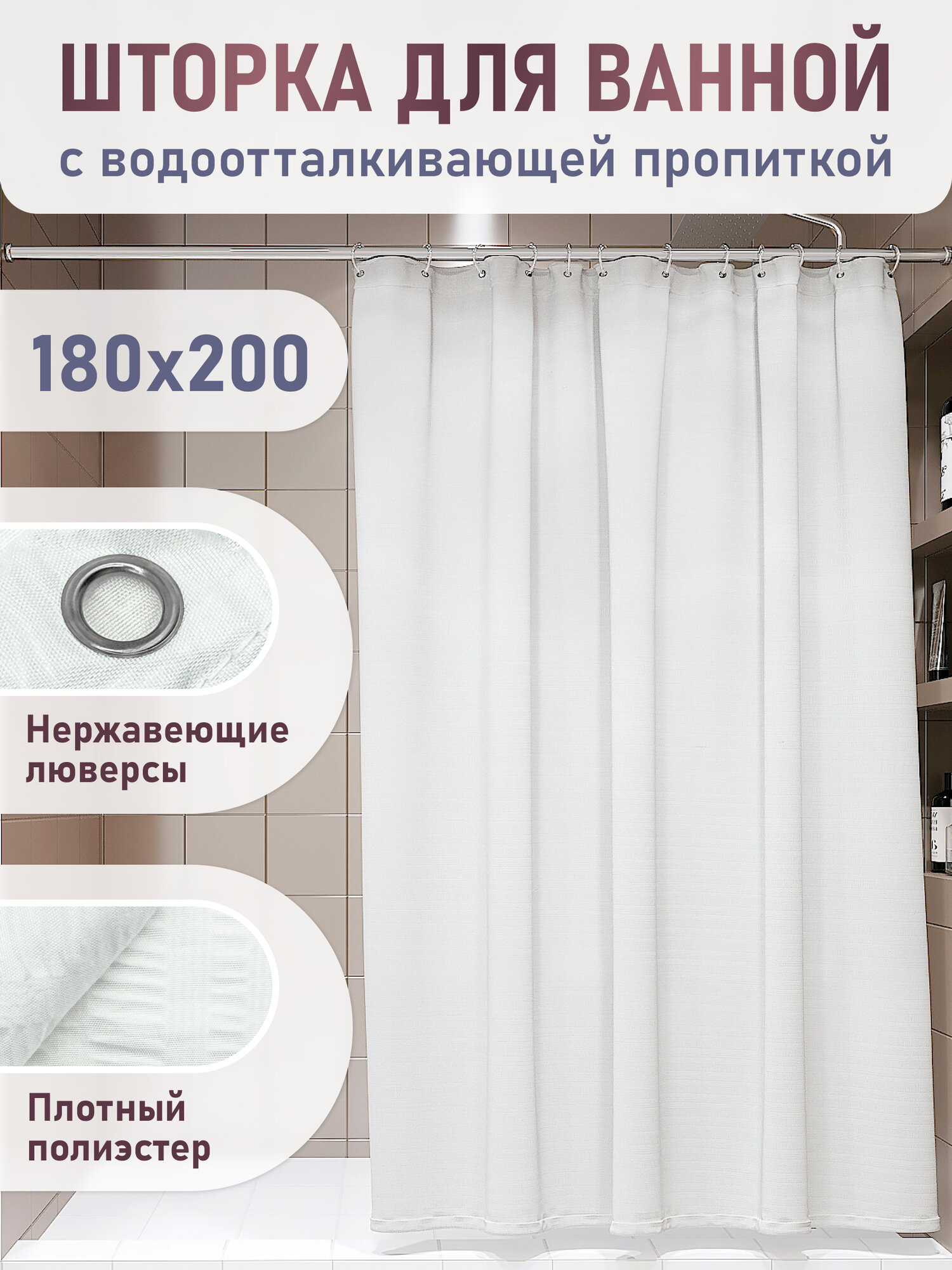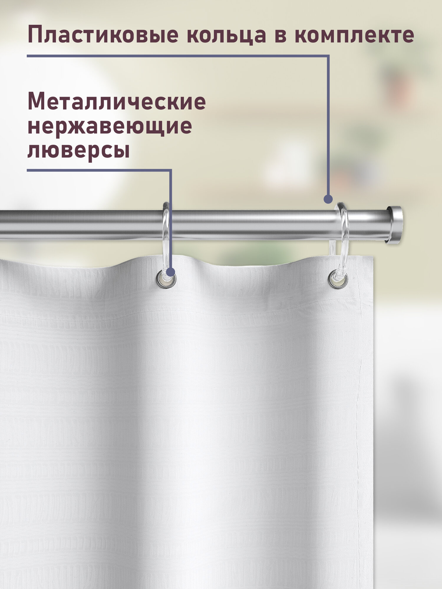 Штора для ванной с кольцами Lemer New Scandy 180x200 см полиэстер цвет бело-черный