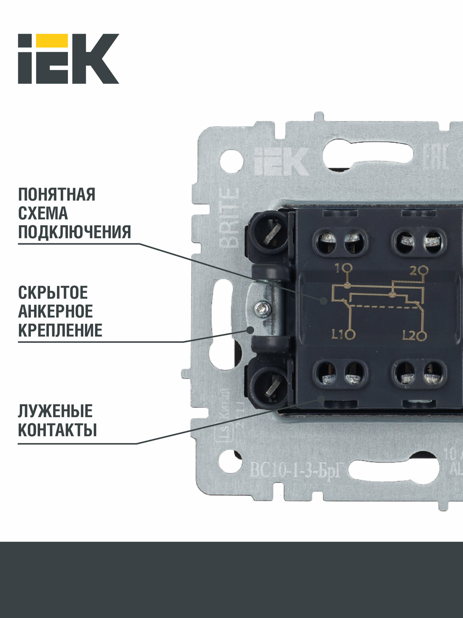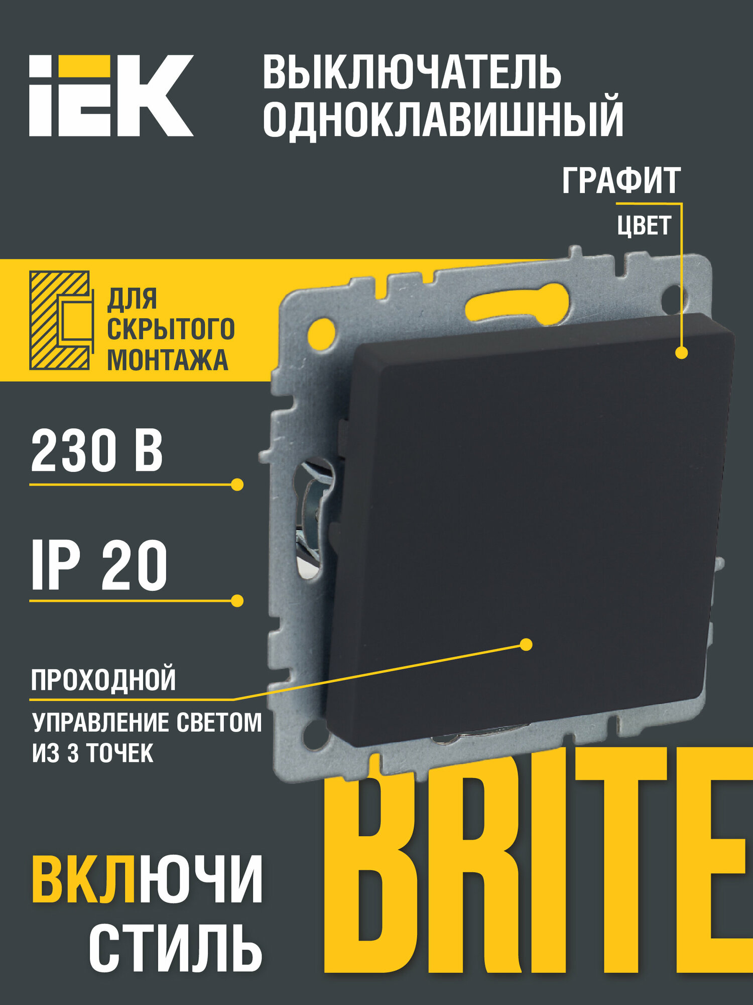Выключатель перекрестный встраиваемый IEK Brite 1 клавиша цвет графит