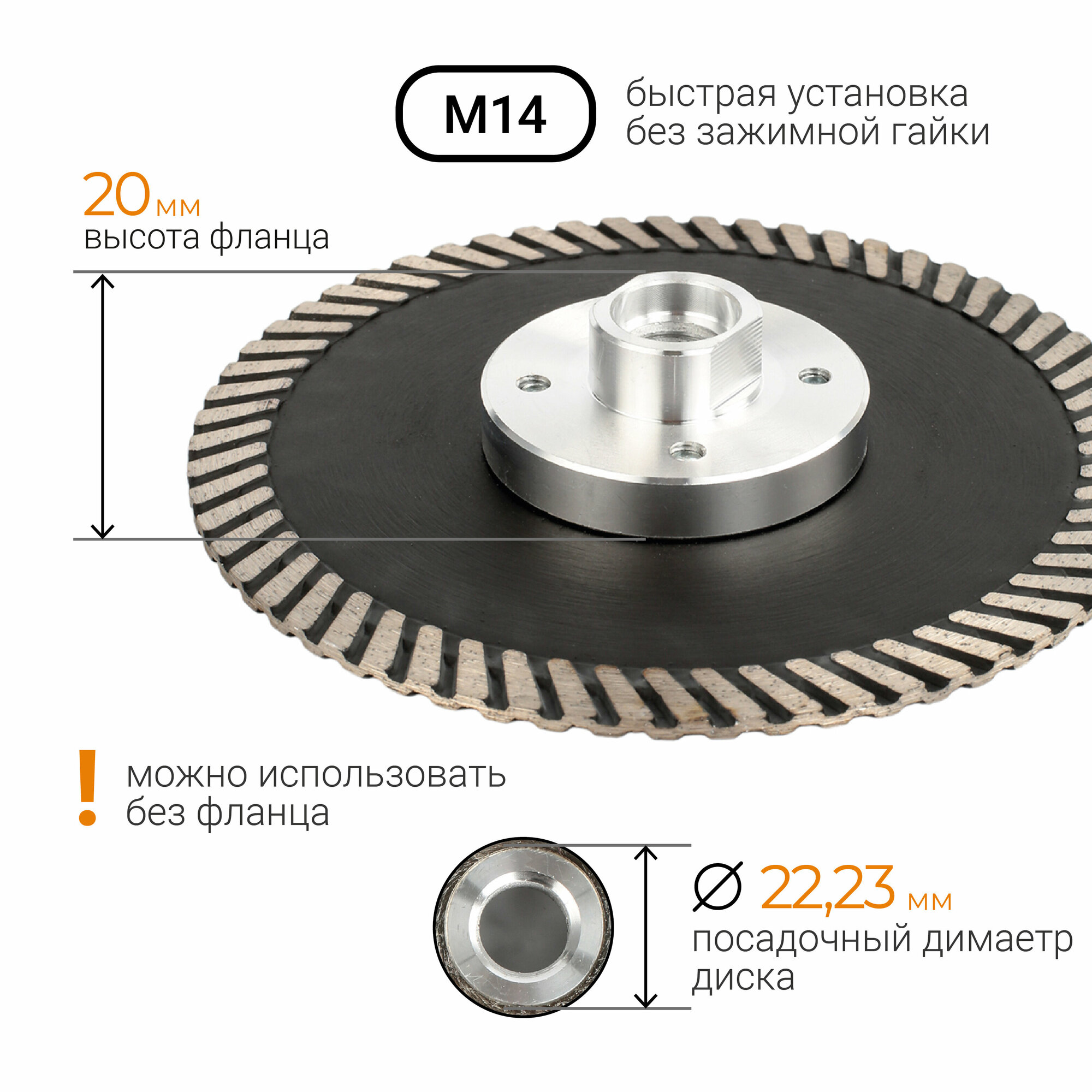 - Для УШМ через фланец М-14 (установка без зажимной гайки).