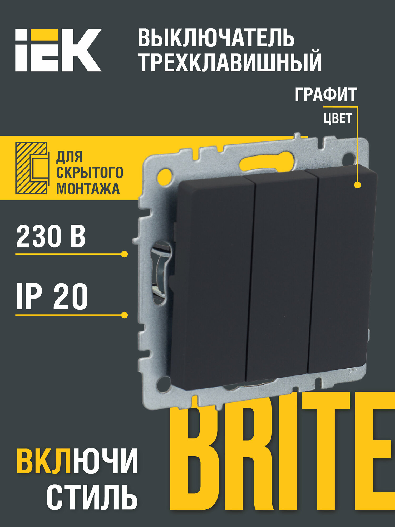 Выключатель встраиваемый IEK Brite 3 клавиши цвет графит