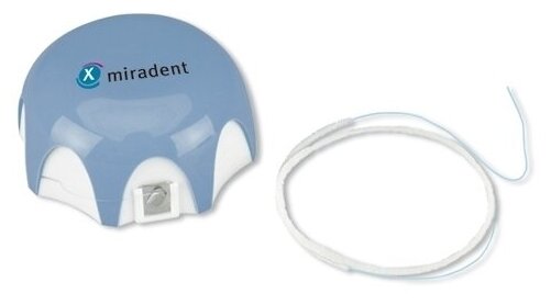 Антибактериальный флосс miradent Mirafloss Implant chx средней толщины (диаметр флосса - 2,2 мм), в форме катушки.