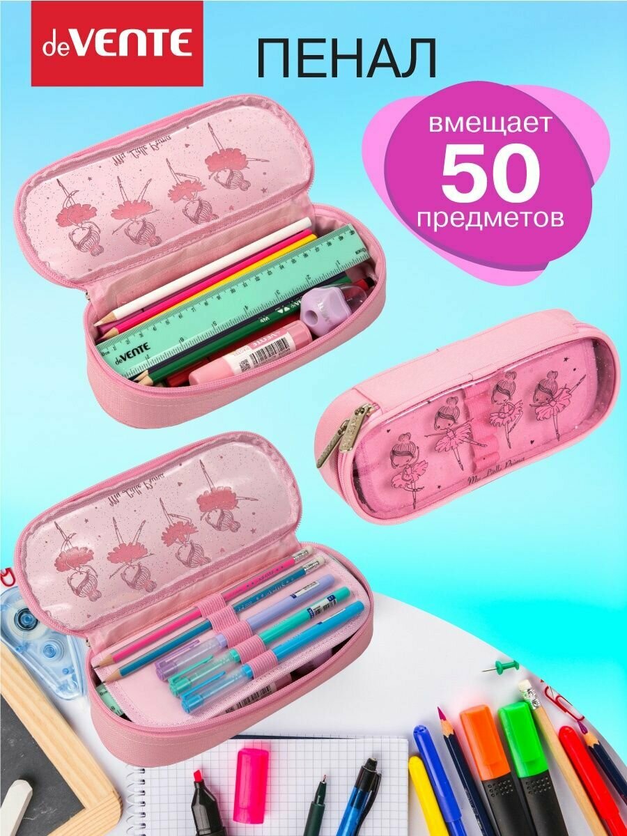 Пенал "deVente. My Little Prima ", овальный, с внутренним органайзером-створкой на липучке.