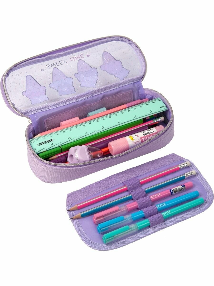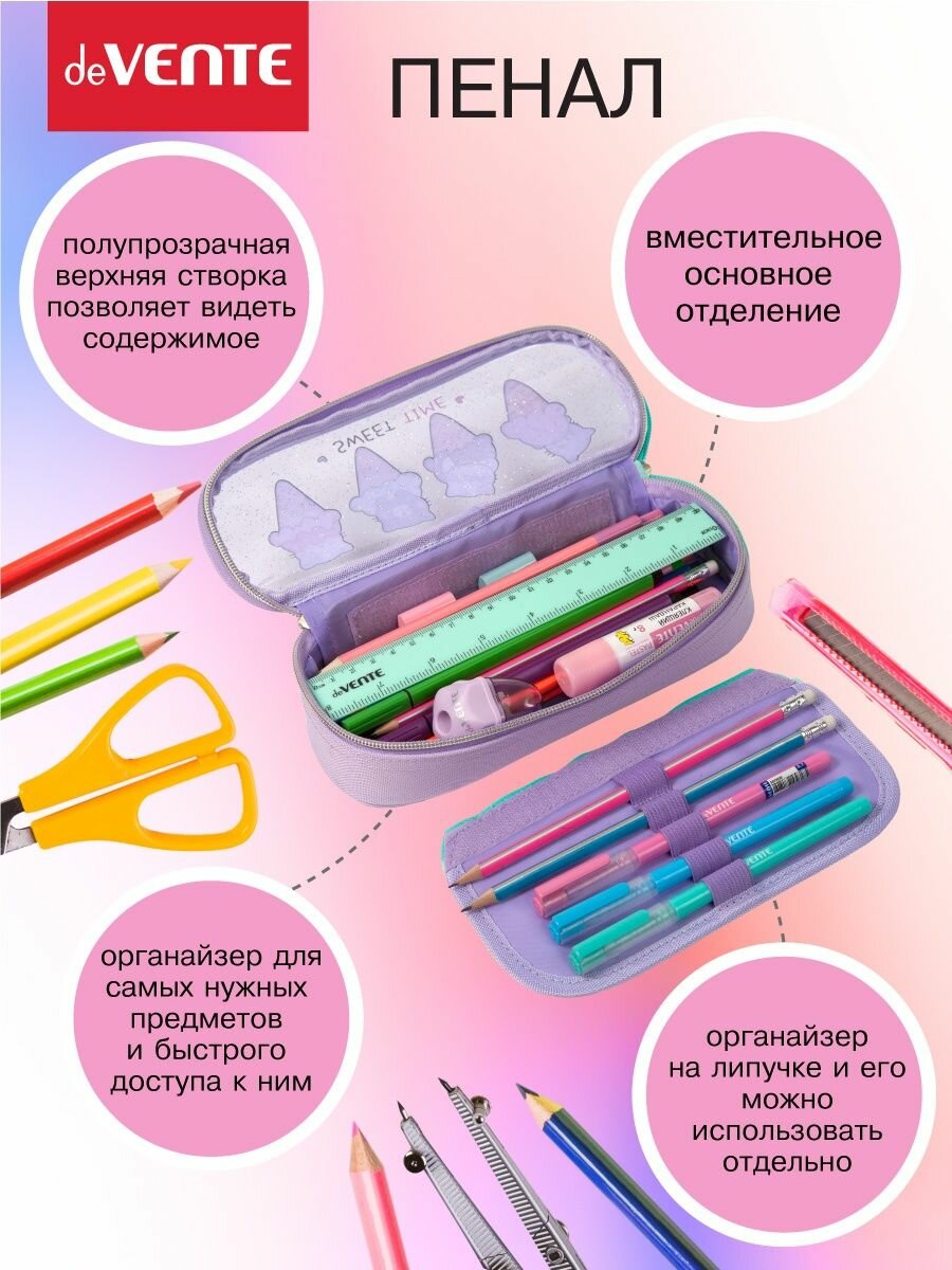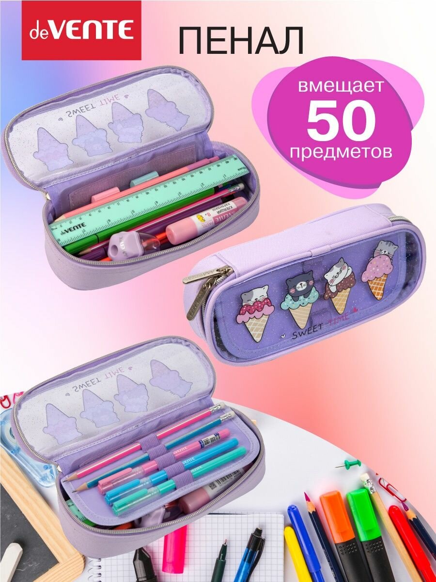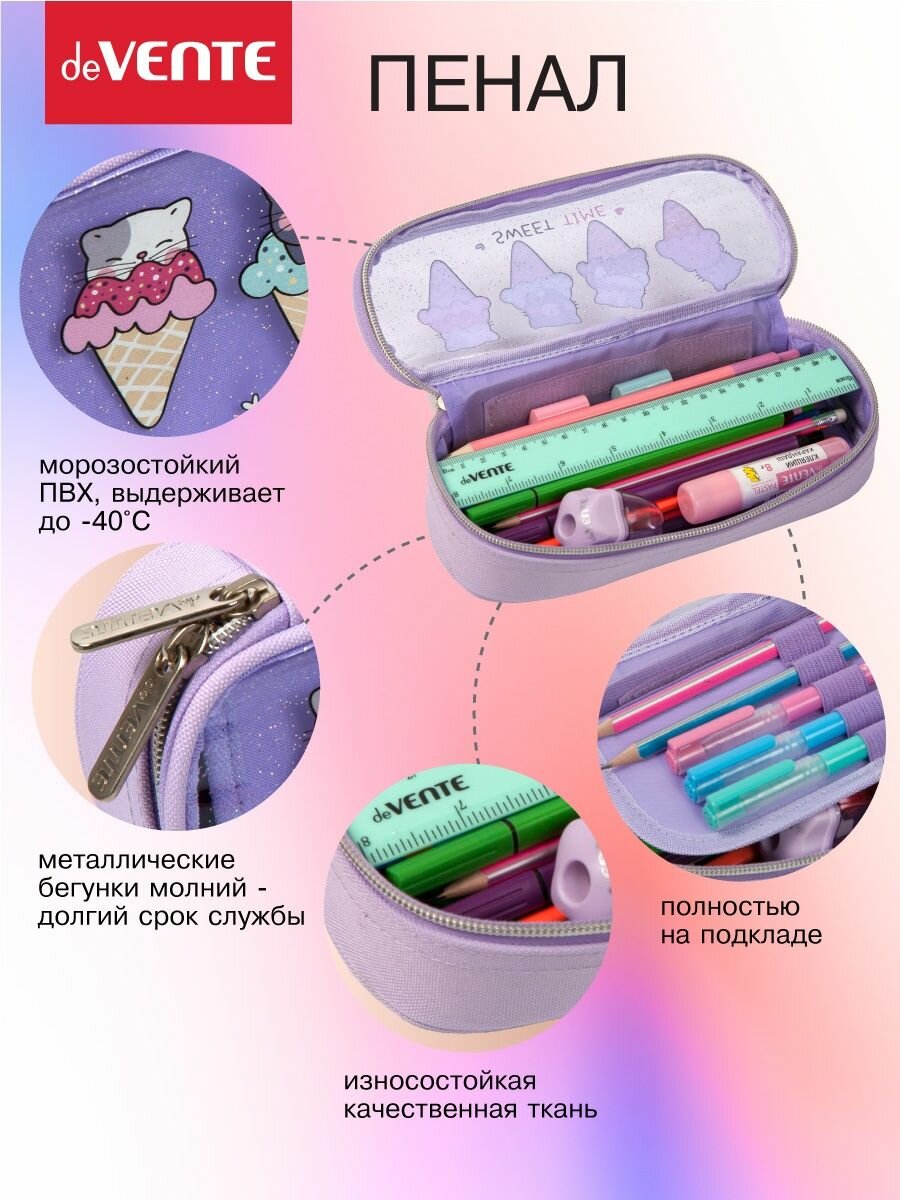 Пенал "deVente. Ice catte", овальный, с внутренним органайзером-створкой на липучке.