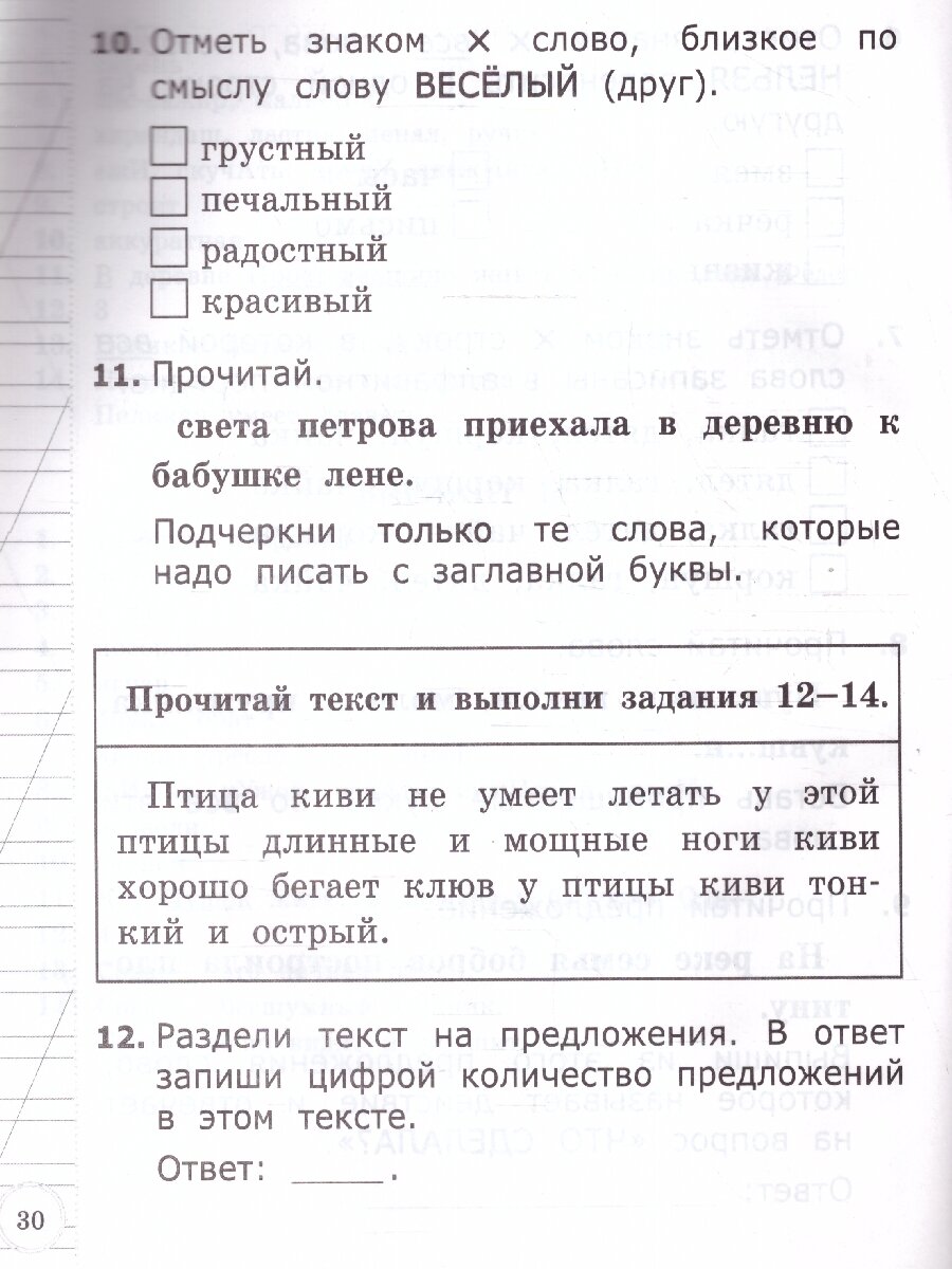 Книга содержит 11 вариантов типовых заданий ВСОКО (внутренняя система оценки качества образования) за курс 1-го класса.