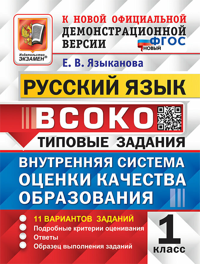 ВСОКО. Русский язык. 1 класс. Типовые задания. Внутренняя система оценки качества образования. 11 вариантов заданий (Языканова Елена Вячеславовна); Экзамен, 2024