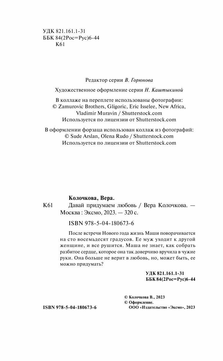 Книга: Давай придумаем любовь (Колочкова Вера Александровна); Эксмо, Редакция 1, 2023