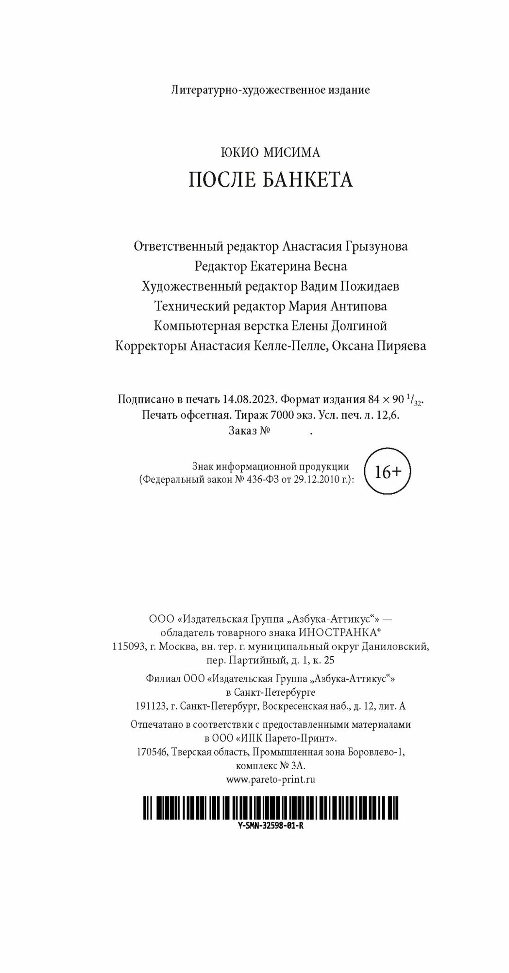 Книга: После банкета (Юкио Мисима); Иностранка, 2024
