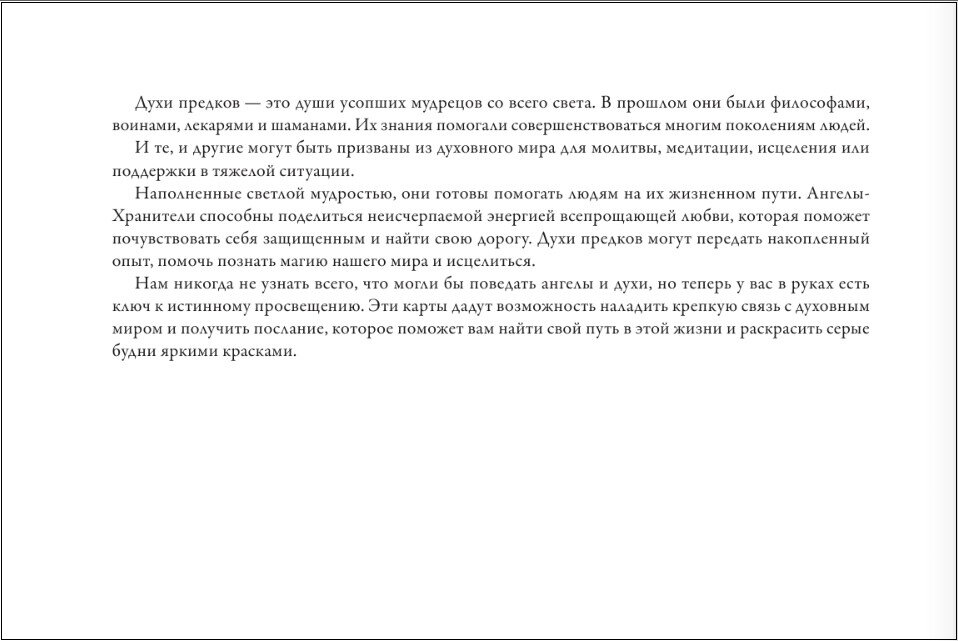 Эта колода поможет вам сделать то же самое, но с наибольшим эффектом! С ее помощью вы быстро установите связь с миром духов. В ней вас приветствуют ангелы-хранители, воины и духи времен года. Все они помогут вам, дадут совет, успокоят, ответят на самые сложные вопросы.