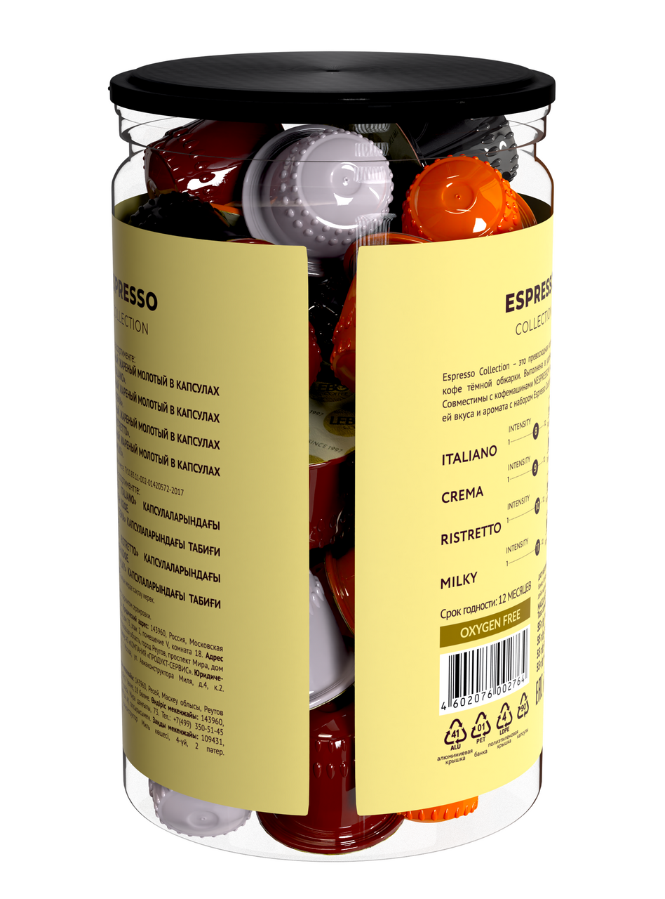 Espresso Collection – это превосходная коллекция натурального кофе тёмной степени обжарки. Выполнена в удобном формате и подходит для капсульной кофемашины. Насладитесь гармонией вкуса и аромата с набором Espresso Collection.