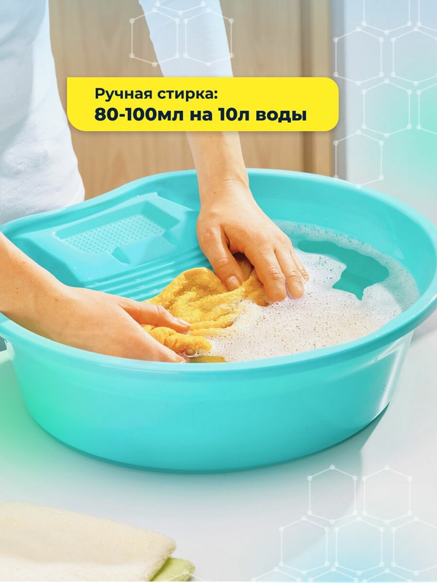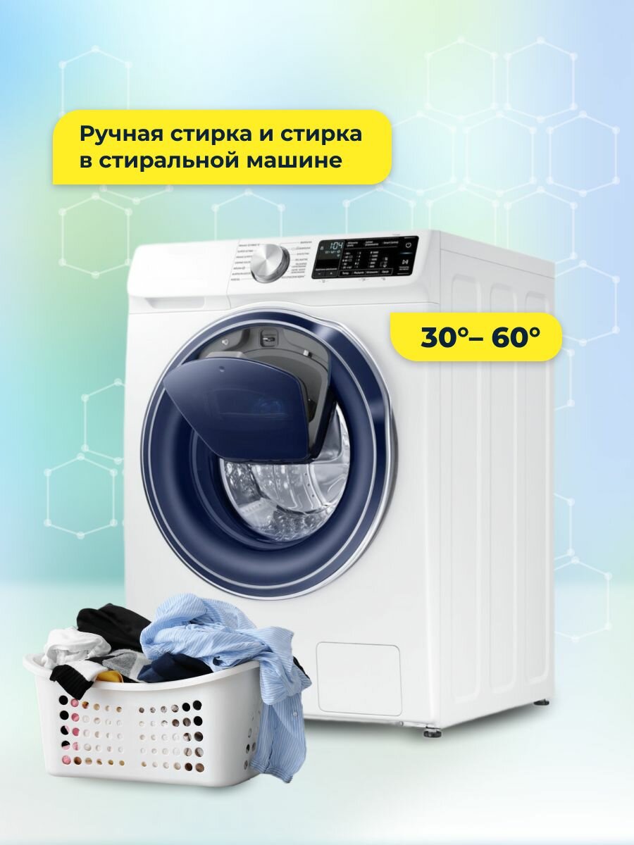 Гель применим для всех видов машинной стирки, а так же справится с ручной стиркой и продолжительным замачиванием.