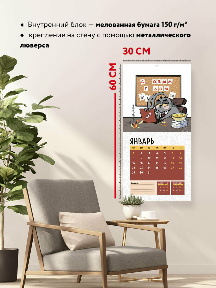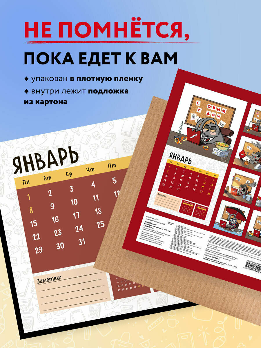 Календарь настенный Эксмо Календарь трудокролика от Bird Born. Календарь настенный на 2024 год (300х300 мм)