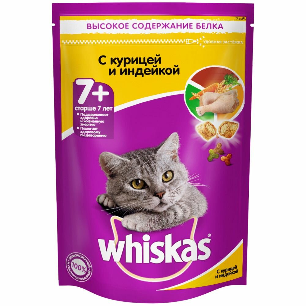 Сухой корм для пожилых кошек Whiskas с курицей и индейкой 800 г