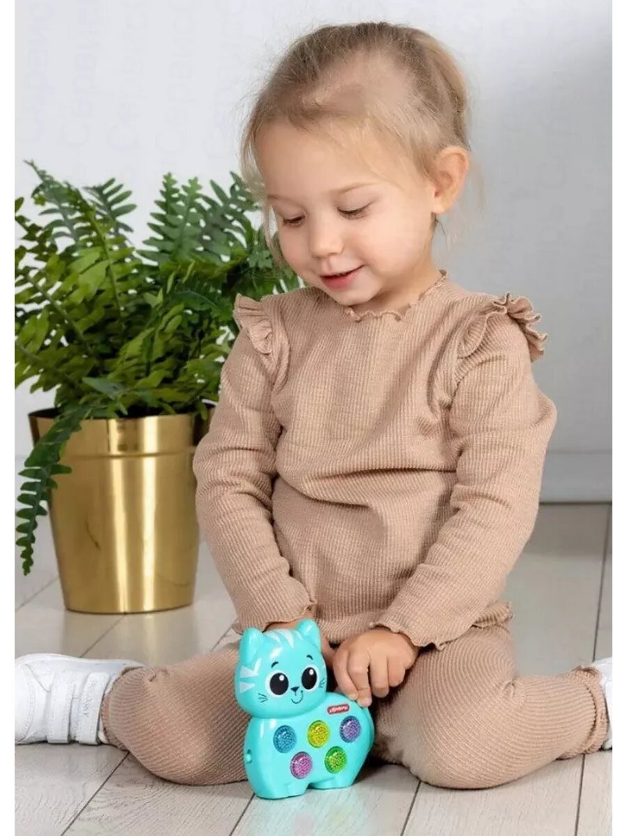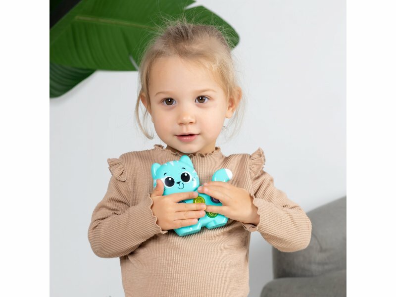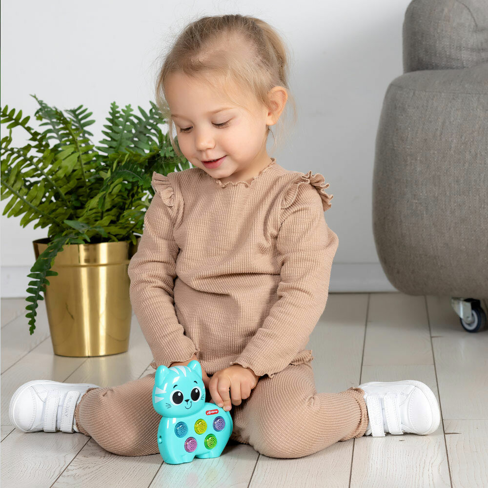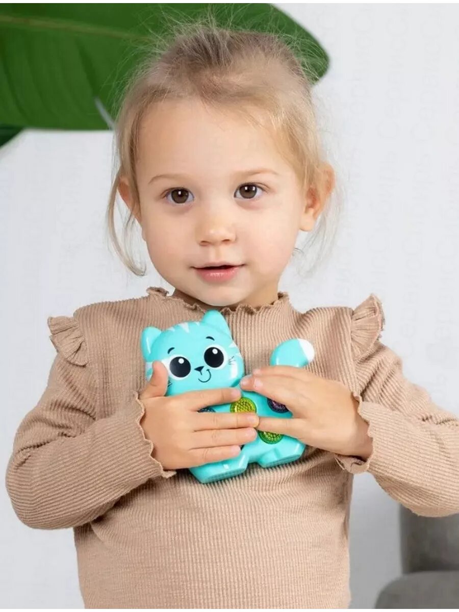 Нажимая на разноцветные кнопочки, малыш послушает веселые песенки и мелодии («Я малыш, котёнок славный», «Стало солнышко теплей», «Друзья», «Сколько пальчиков на ручке?», «Весёлая карусель» и др.), а также множество забавных звуков и голосов зверят.