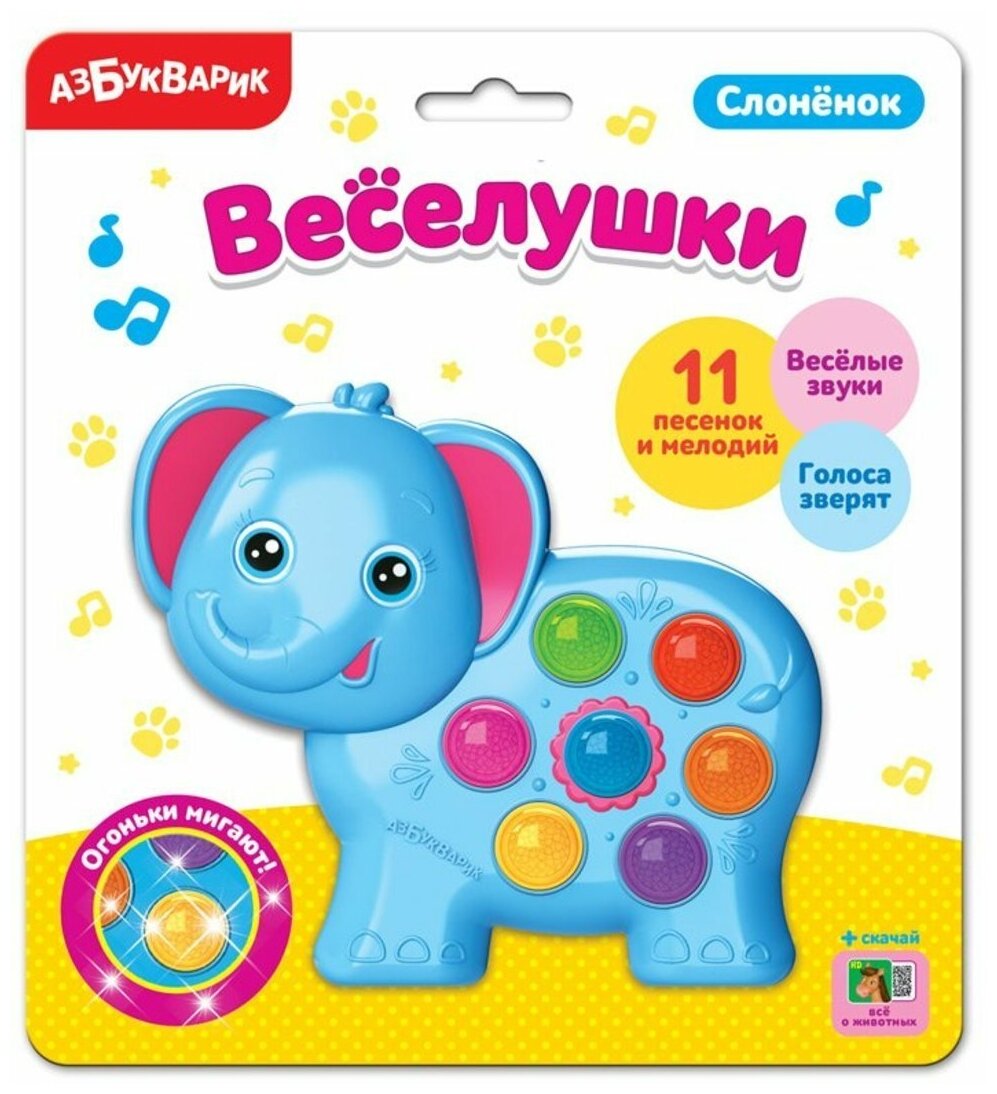 Азбукварик Веселушки Электронная музыкальная игрушка Слоненок