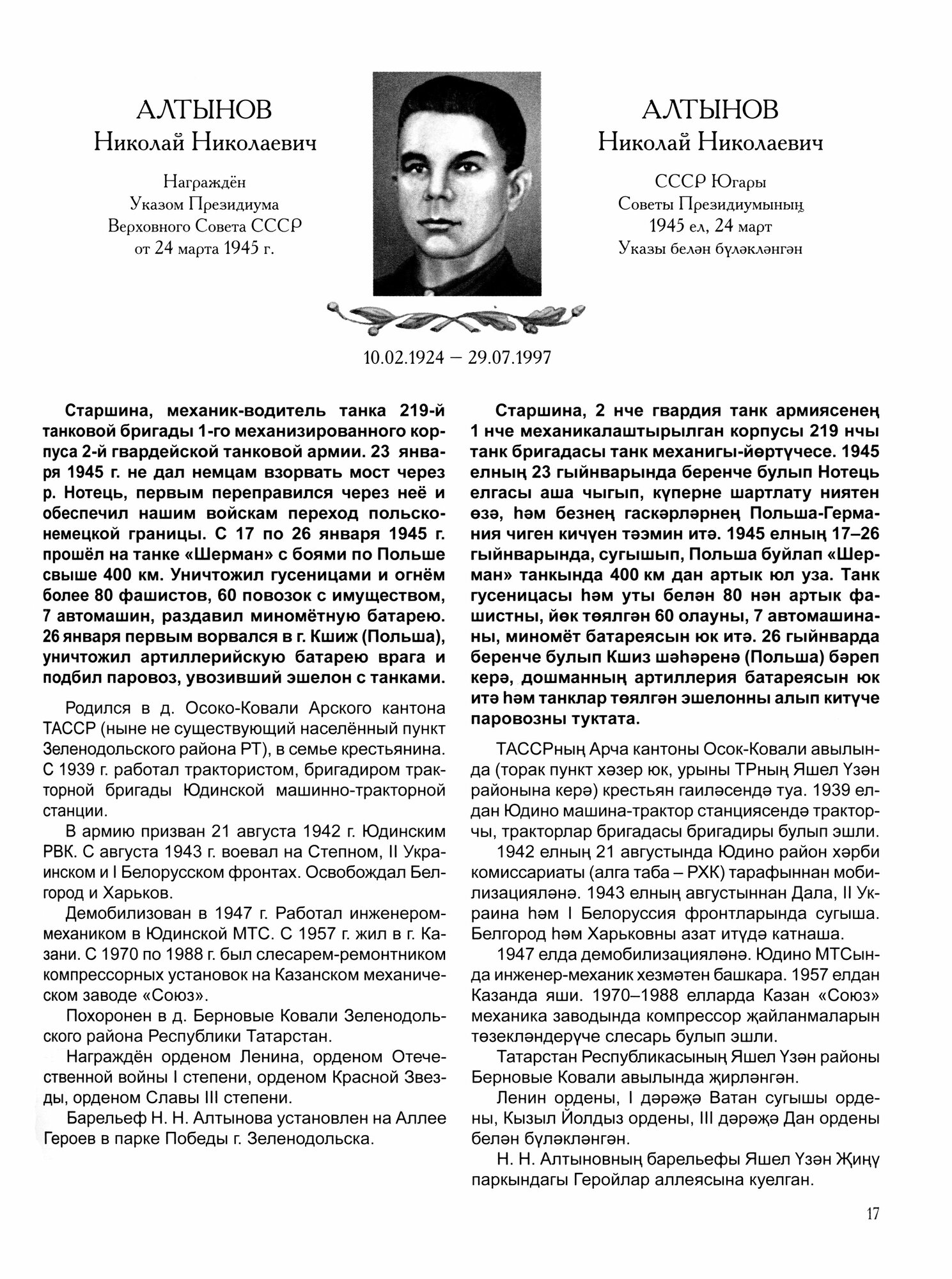 В данную книгу включены сведения о 183 Героях Советского Союза - уроженцах Татарстана. О каждом из них представлена биографическая справка с описанием подвига и фотография. Кроме того, в приложении даны списки 167 Героев Советского Союза, чья судьба связана с Татарстаном; 110 Героев-татар из других регионов страны; 232 Героев, учившихся и служивших в Татарстане; 215 уроженцев и жителей республики, представленных к званию Героя, но получивших лишь ордена; 50 полных кавалеров ордена Славы.