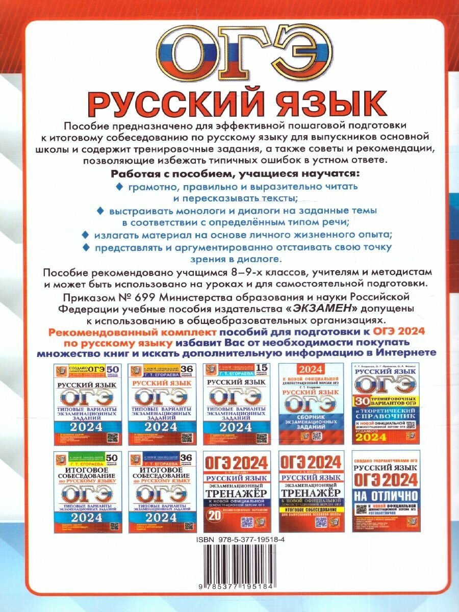 ОГЭ-2024. Русский язык. Тренажёр. Итоговое собеседование для выпускников основной школы (Егораева Галина Тимофеевна); Экзамен, 2024