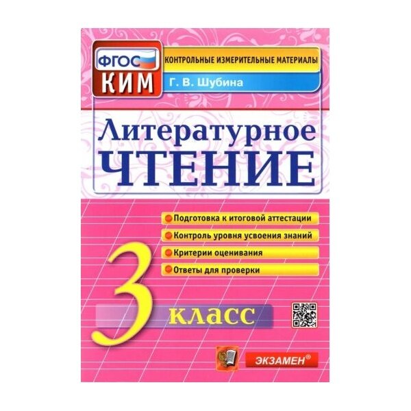 Литературное чтение: 3 класс: Контрольные измерительные материалы. ФГОС (Шубина Галина Викторовна); Экзамен, 2023
