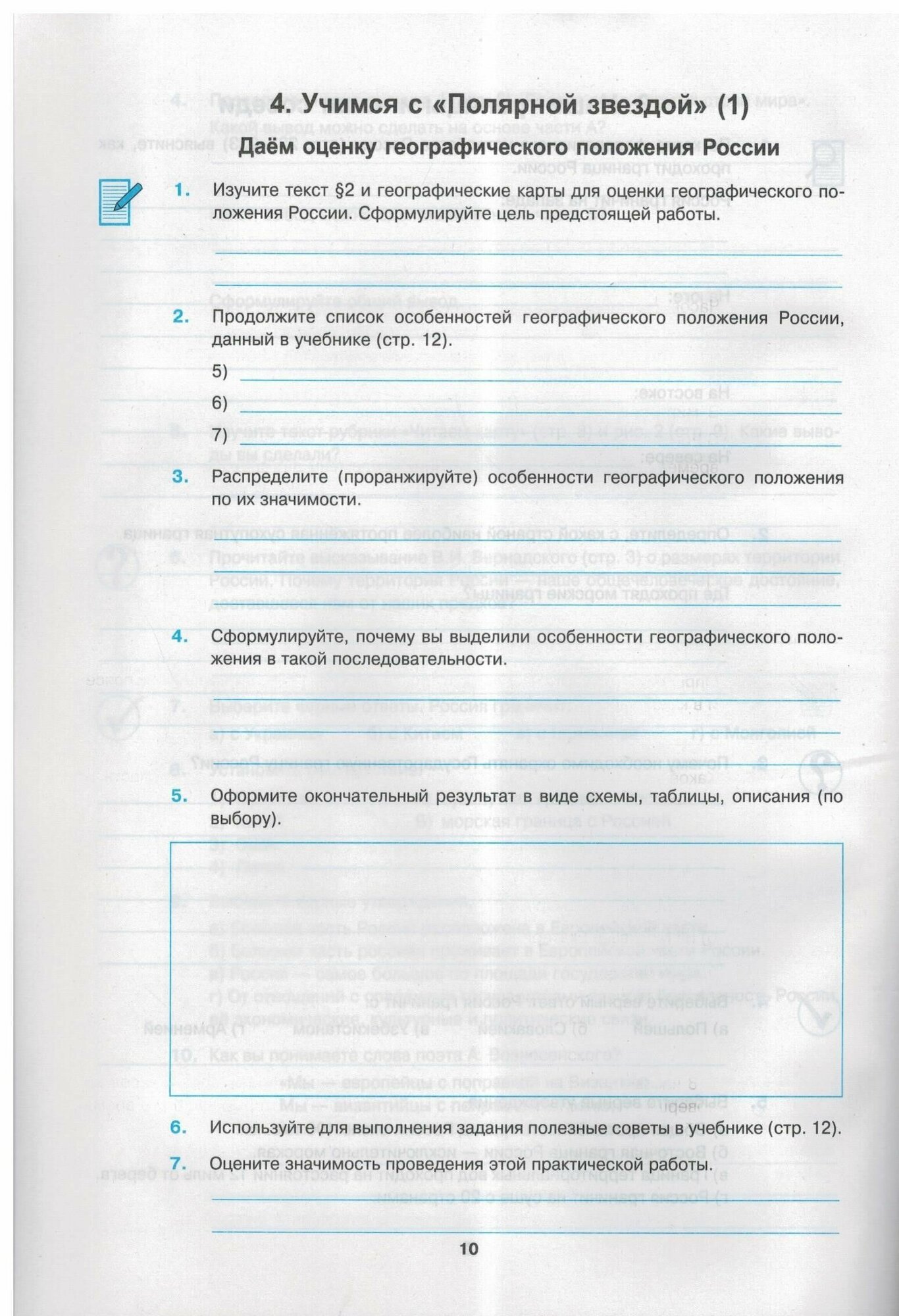 Данное пособие полностью соответствует федеральному государственному образовательному стандарту. Предлагаемое пособие включает разнообразные виды заданий, направленные на развитие познавательного интереса учащихся, повышение мотивации к обучению, отработку предметных и метапредметных умений и навыков. В рабочую тетрадь включены необходимые контурные карты и задания по работе с ними. Особый раздел составляет проектно-исследовательский блок, реализующий практико-ориентированную составляющую курса географии, а также рефлексивно-оценочный блок, помогающий определить успехи в обучении. В пособии представлены все практические работы, предусмотренные программой, даны алгоритмы и методика их выполнения. Рабочая тетрадь предназначена к использованию как на уроке, так и дома для выполнения домашних заданий.