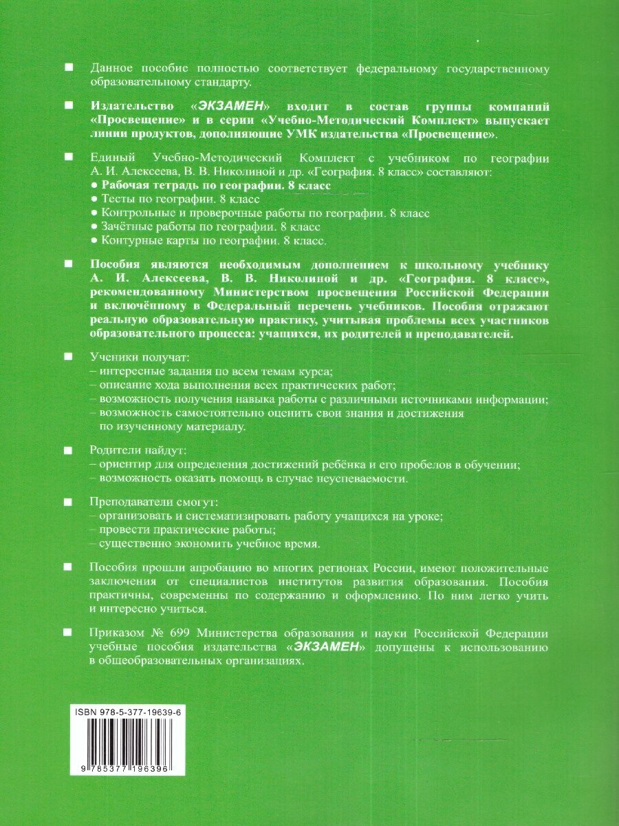 Рабочая тетрадь по Географии. 8 класс. К учебнику А.И. Алексеева В.В Николиной и др. (Вера Викторовна Николина); Экзамен, 2026