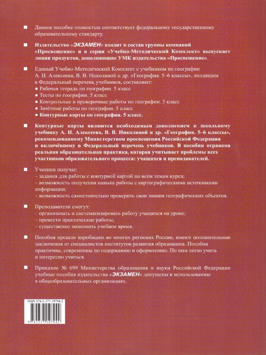 Данное пособие полностью соответствует Федеральному государственному образовательному стандарту. Контурные карты являются необходимым дополнением к школьному учебнику А. И, Алексеева, В. В. Николиной и др. "География. 5-6 классы", рекомендованному Министерством просвещения Российской Федерации и включенному в Федеральный перечень учебников. В пособии отражена реальная образовательная практика, которая учитывает проблемы всех участников образовательного процесса: учащихся и преподавателей.