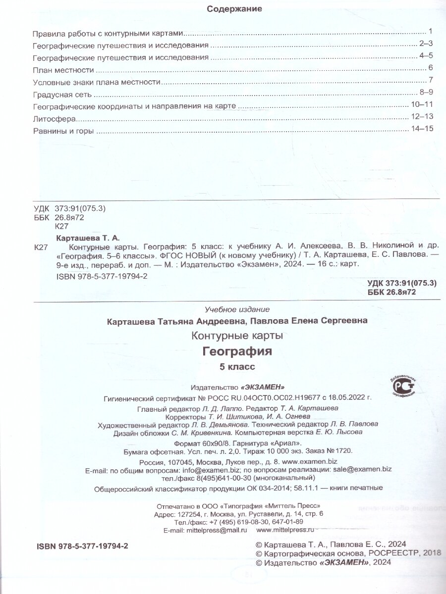Контурные карты по Географии. 5 класс. К учебнику А. И. Алексеева В. В. Николиной и др. (Татьяна Андреевна Карташева, Елена Сергеевна Павлова); Экзамен, 2026