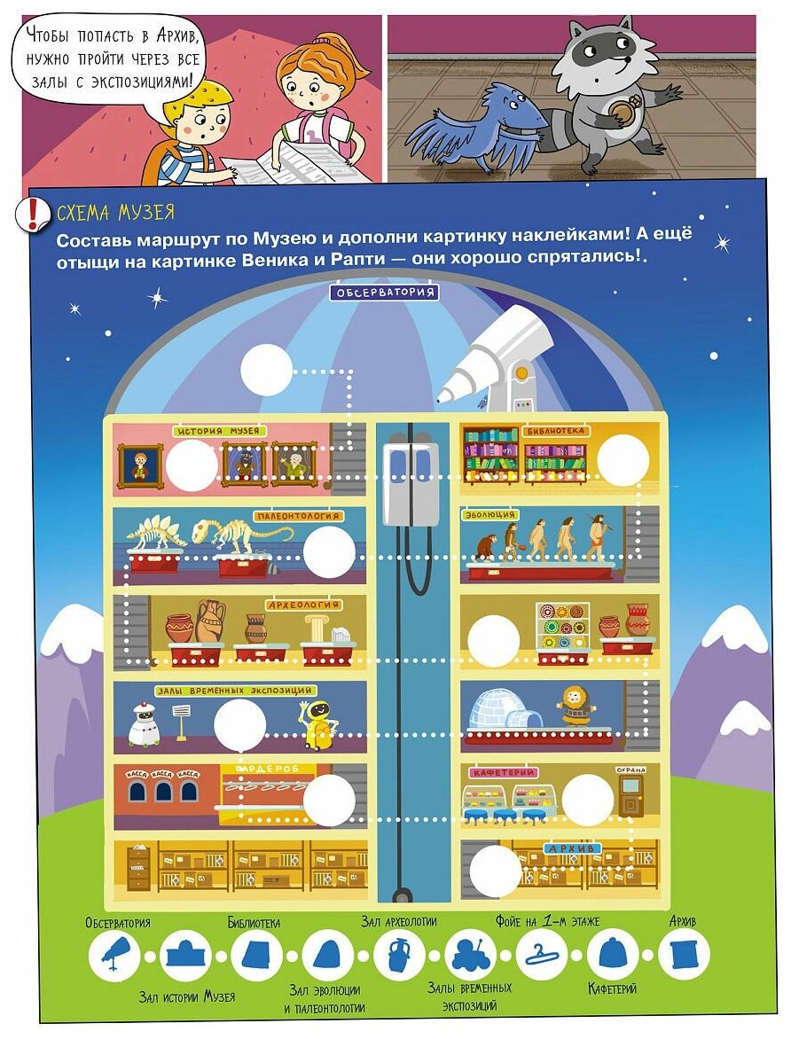 Во-вторых, это головоломки и задания, напрямую связанные с сюжетом, 8 поделок, настоящий дневник путешественника и 100 многоразовых наклеек!