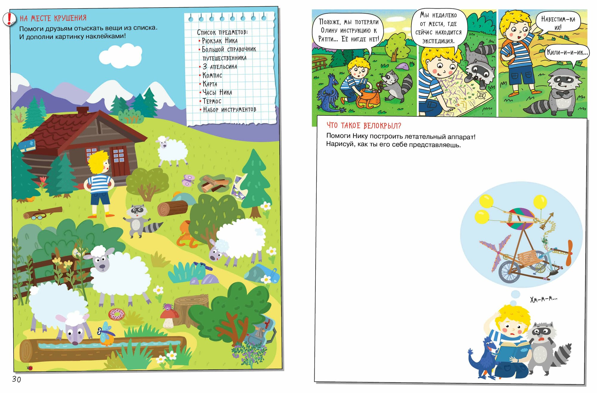 Во-вторых, это головоломки и задания, напрямую связанные с сюжетом, 8 поделок, настоящий дневник путешественника и 100 многоразовых наклеек!
