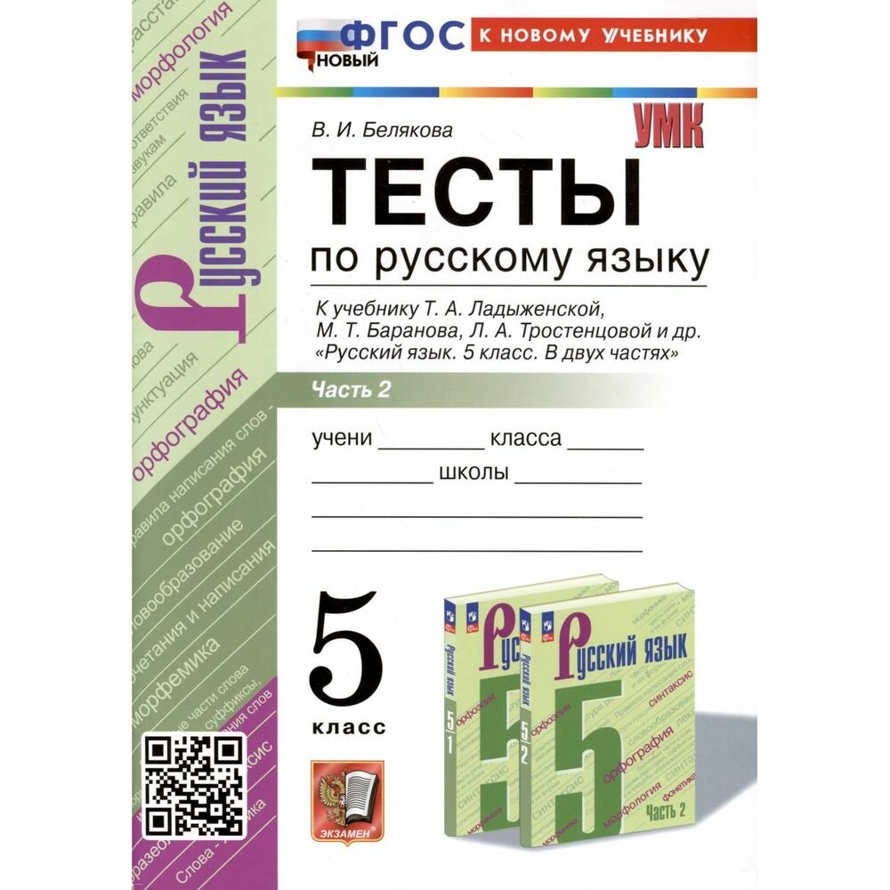 Тесты по русскому языку. 5 класс. В 2 частях. Часть 2. К учебнику Ладыженской Т.А. М.Т. Баранова Л.А Тростенцовой и др. (Белякова Валентина Ивановна); Экзамен, 2024
