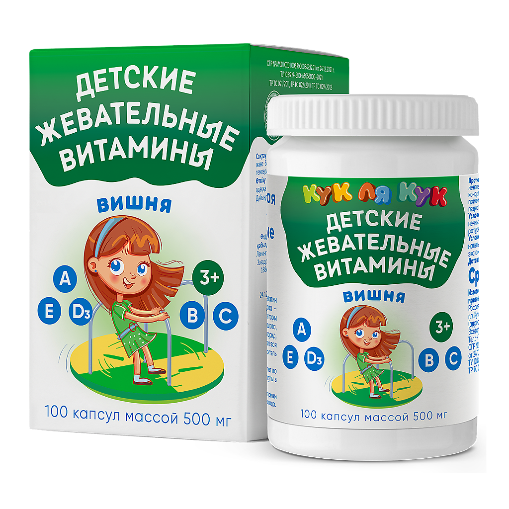 Витамины жевательные детские Мирролла Кук Ля Кук со вкусом вишни с 3 лет 100 капсул