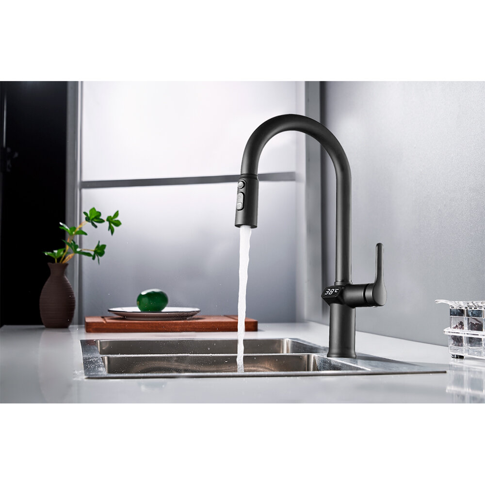смеситель для кухни ESKO вытяжной LED дисплей черный (K15B LED)