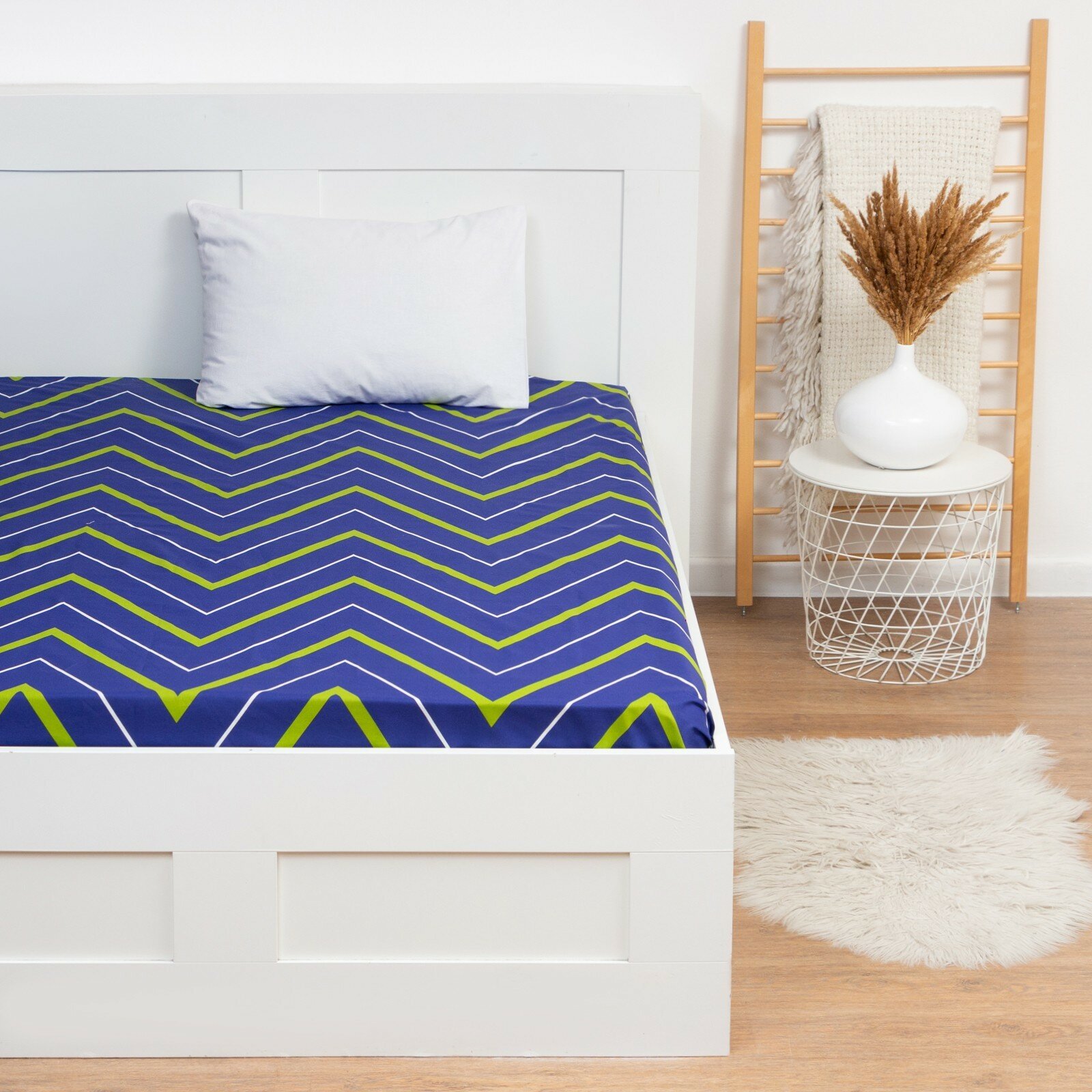Простыня Зигзаги цвет: синий зеленый (200х220) Этель (tel935485)