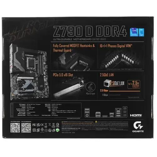 GIGABYTE Z790 D DDR4, LGA1700, Z790, 4*DDR4, HDMI, 6 SATA 6 Гб/с, M2, Audio, Gb LAN, USB 3.2, USB 2.0, Type-C, ATX