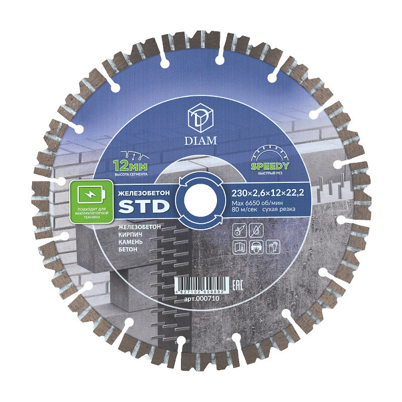Диск алмазный Diam STD Железобетон 230*26*12*222мм 000710