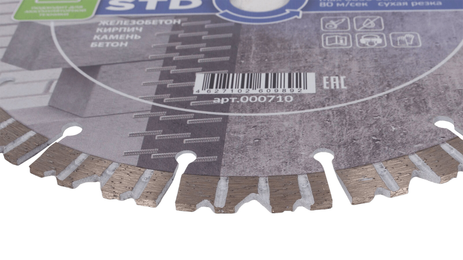 Сегментный алмазный отрезной круг предназначен для резки железобетона, бетона, камня, кирпича. Данный круг обеспечит качественное выполнение работ на больших объектах или при периодической работе по разным материалам. Применяется на ручном электроинструменте без водяного охлаждения, в том числе на аккумуляторной технике.