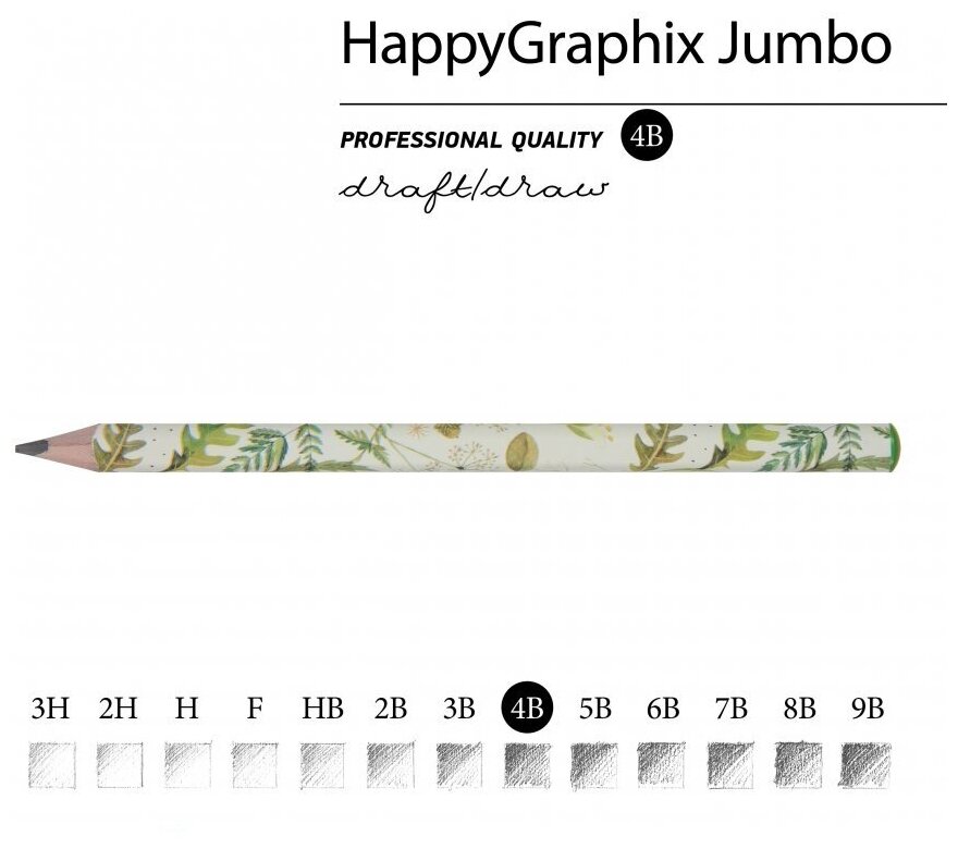 Карандаш чернографитовый HappyGraphix Jumbo. Луговые травы 4В Bruno Visconti