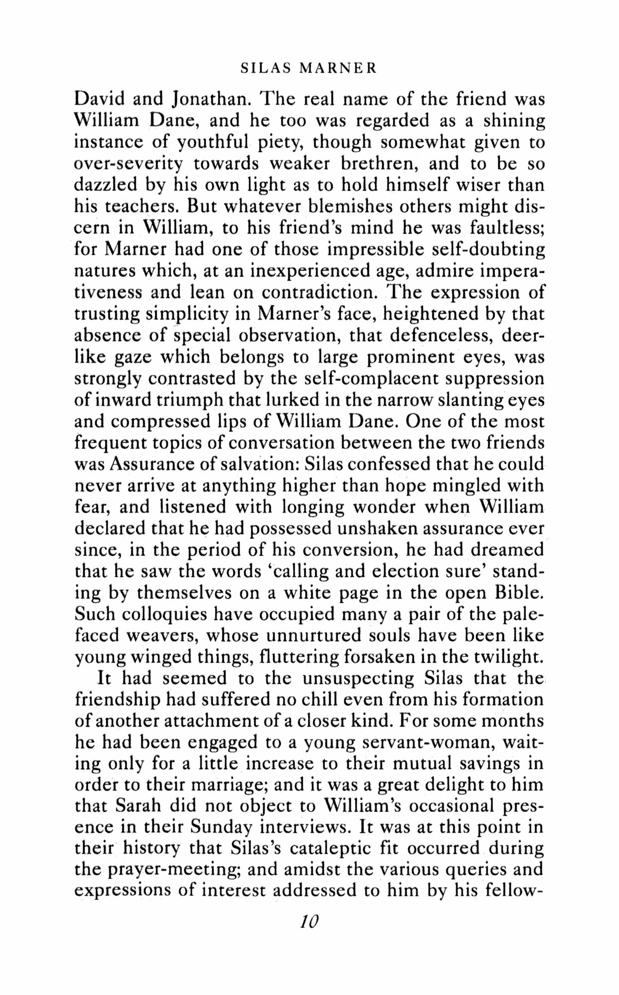 Silas Marner lives a friendless and isolated existence near the country village of Raveloe, hoarding his gold. One night his fortune is stolen and Silas loses everything he holds dear. But then the golden-haired child Eppie appears in his home, and Silas begins to reform bonds of faith and human connectedness that he once renounced forever.