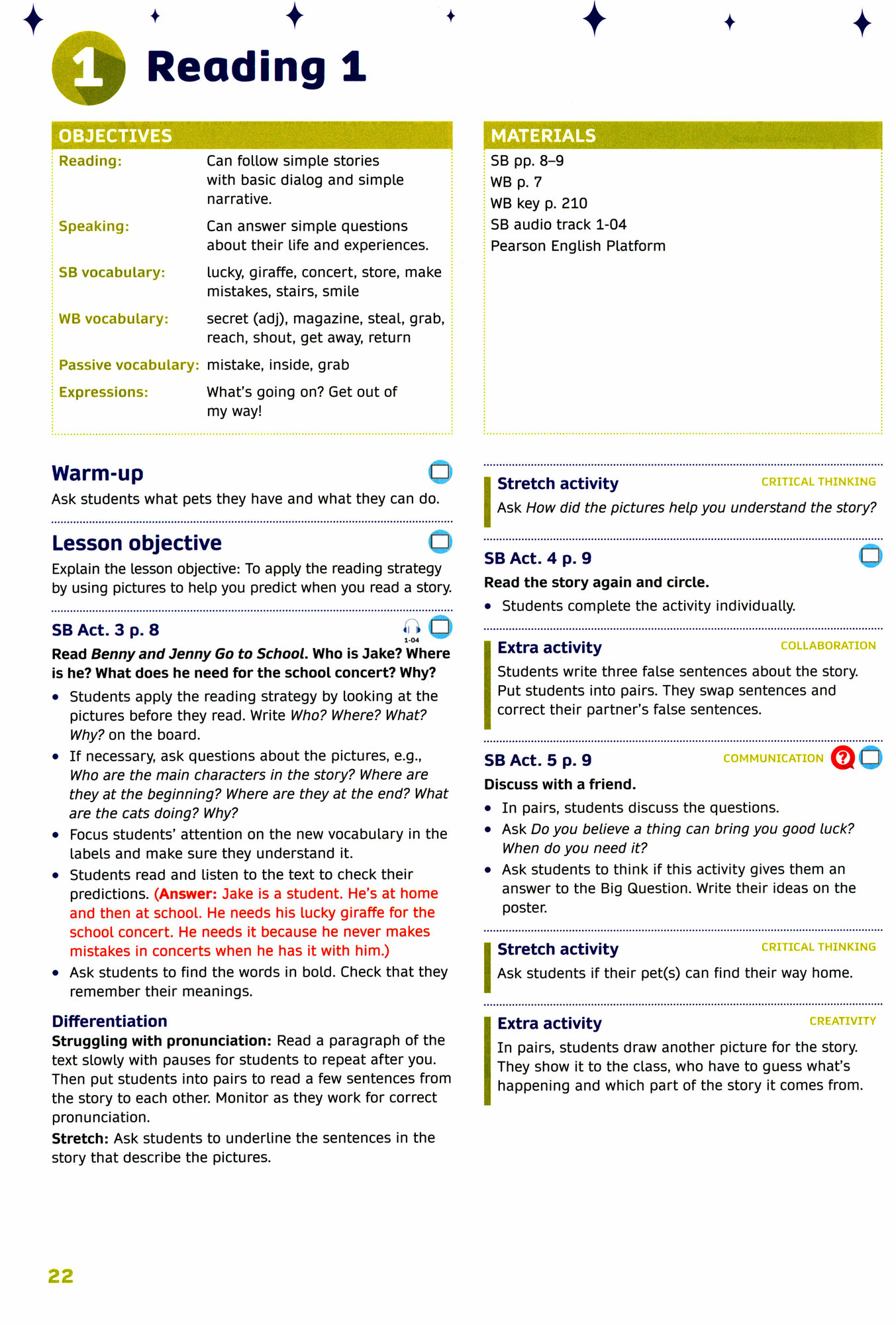 - Reduced Student's Book pages with answers provide teachers at-a-glance look at the lesson
