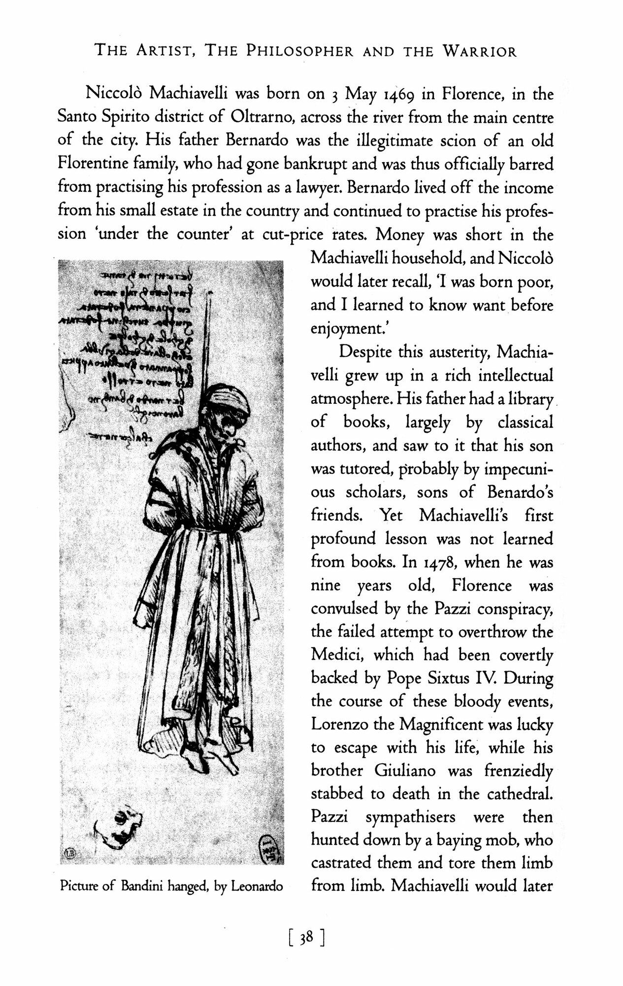In the autumn of 1502 three giants of the Renaissance period - Cesare Borgia, Leonardo da Vinci and Niccolo Machiavelli - set out on one of the most treacherous military campaigns of the period. Cesare Borgia was a ferocious military leader whose name was synonymous with brutality and whose reputation was marred with the suspicion of incest. Niccolo Machiavelli was a witty and subversive intellectual, more suited to the silken diplomacy of royal courts than the sodden encampments of a military campaign. And Leonardo da Vinci was a visionary master and the most talented military engineer in Italy. What led him to work for the monstrous Borgia? And what attracted him to the cunning Machiavelli?