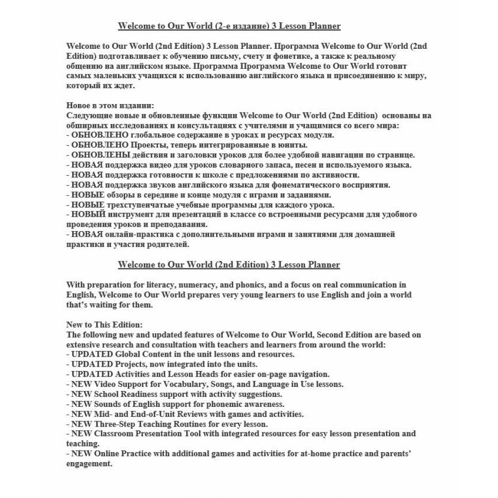 На сегодняшний день товар «Книга: Welcome to Our World 3. 2nd Edition. Lesson Planner (O`Sullivan Jill Korey; Kang Shin Joan); National Geographic Learning, 2021» можно купить с кешбеком в 1 магазине: Яндекс.Маркет