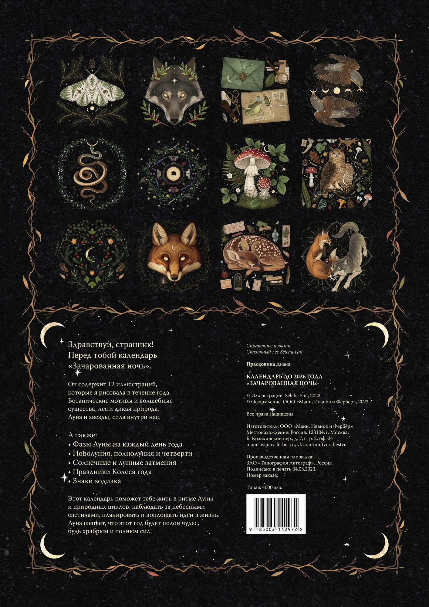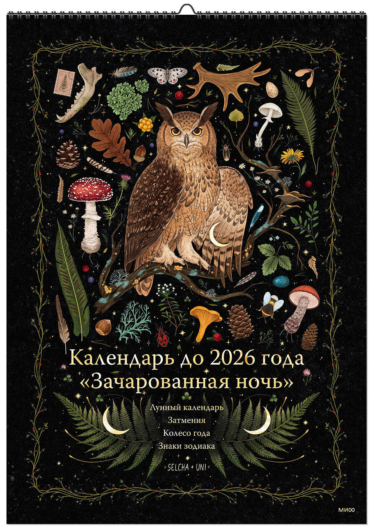 Настенный календарь с фазами луны на 2024–2026 гг. в стиле cosy darkness от иллюстратора Selcha Uni. Атмосферные иллюстрации для каждого месяца добавят частичку природной магии в городскую квартиру.