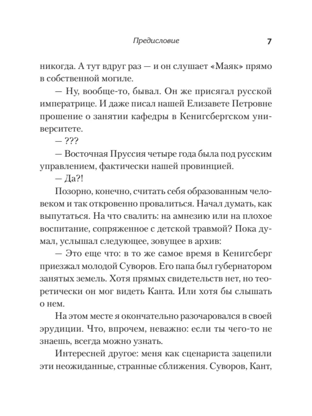 Перед вами не очередная краеведческая книга о Калининградской области. Это литературный мини-сериал о том, как в отдельно взятой иностранной провинции протекала большая история России. Петр Великий приезжает сюда инкогнито, чтобы вести кулуарные переговоры с прусским герцогом и учиться артиллерийским наукам, Суворов вступает в масонскую ложу, Григорий Орлов конвоирует пленного адъютанта Фридриха Второго, Багратион, Барклай и Денис Давыдов бьются с войсками Наполеона, Достоевский скорбит о неразделенной любви, Ленин обдумывает создание революционной организации, а Твардовский завершает "Василия Теркина".