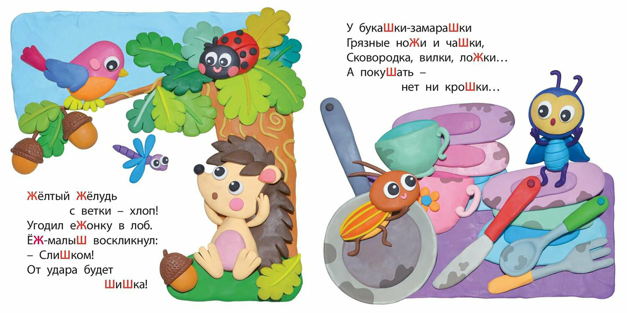 В этой книжке все шепчут, шипят и жужжат – жуки, ужи, ежи, жирафы, жаба, букашки и даже поварешка.
