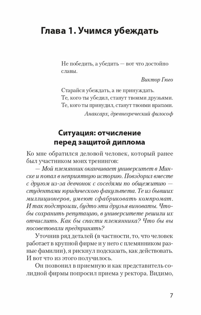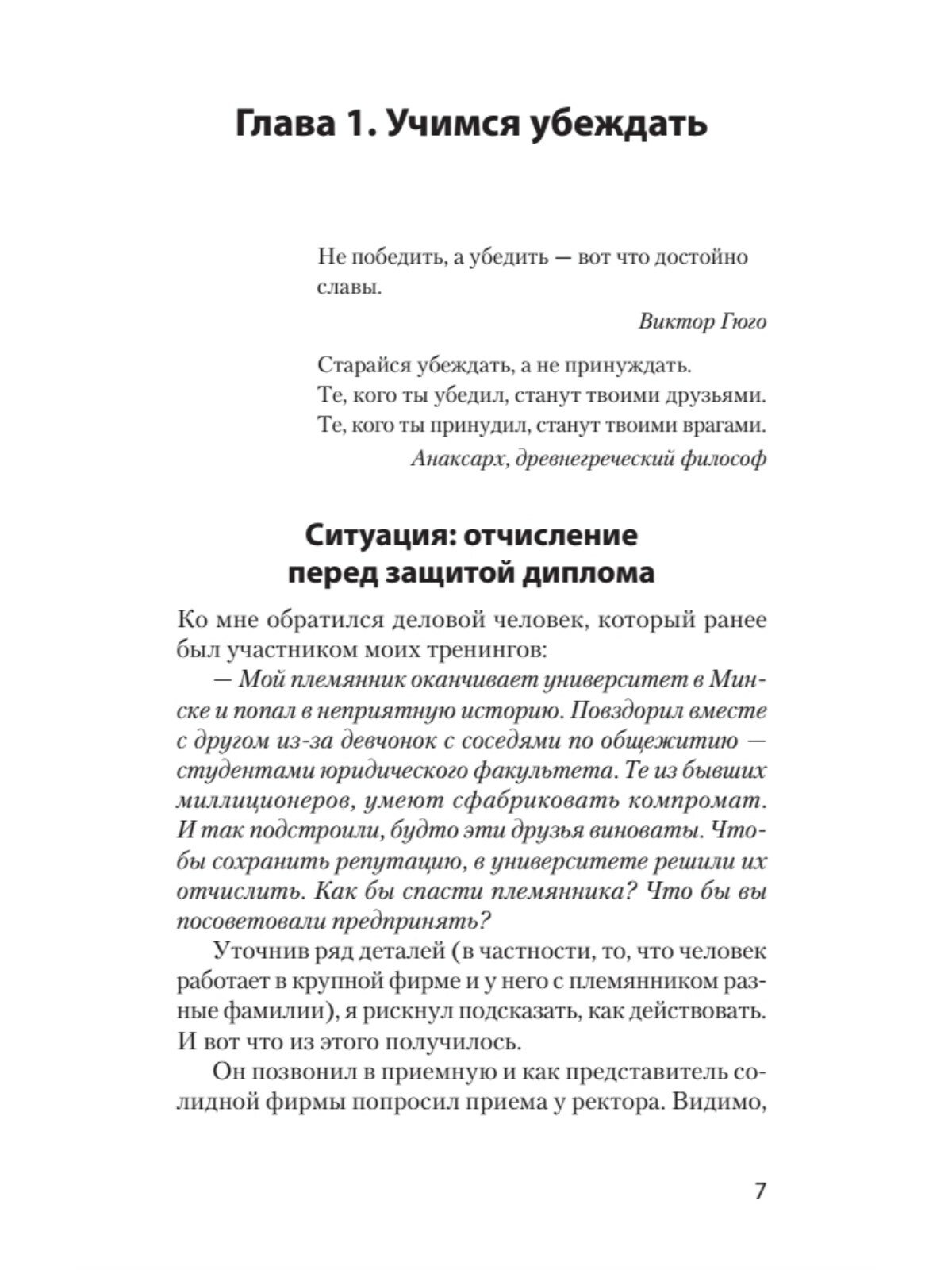 В конфликтах никто не заинтересован, но они случаются в жизни каждого человека снова и снова. Можно ли их избежать? Можно, но оказывается не все конфликты одинаково ужасны. Зачастую их разрешение способствует улучшению в делах или взаимоотношениях конфликтующих. Автор этой книги, психолог и конфликтолог с пятидесятилетним опытом, рассказывает, как избегать деструктивных конфликтов, а конструктивные использовать себе во благо посредством применения подходящих психологических приемов. Примеры из собственной жизни и практики автора показывают, насколько важно для достижения успеха обладать разнообразными психологическими техниками и приемами воздействия.