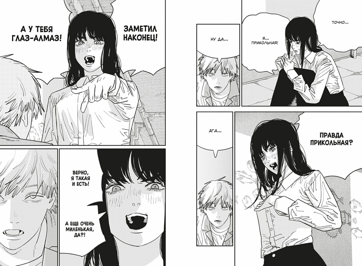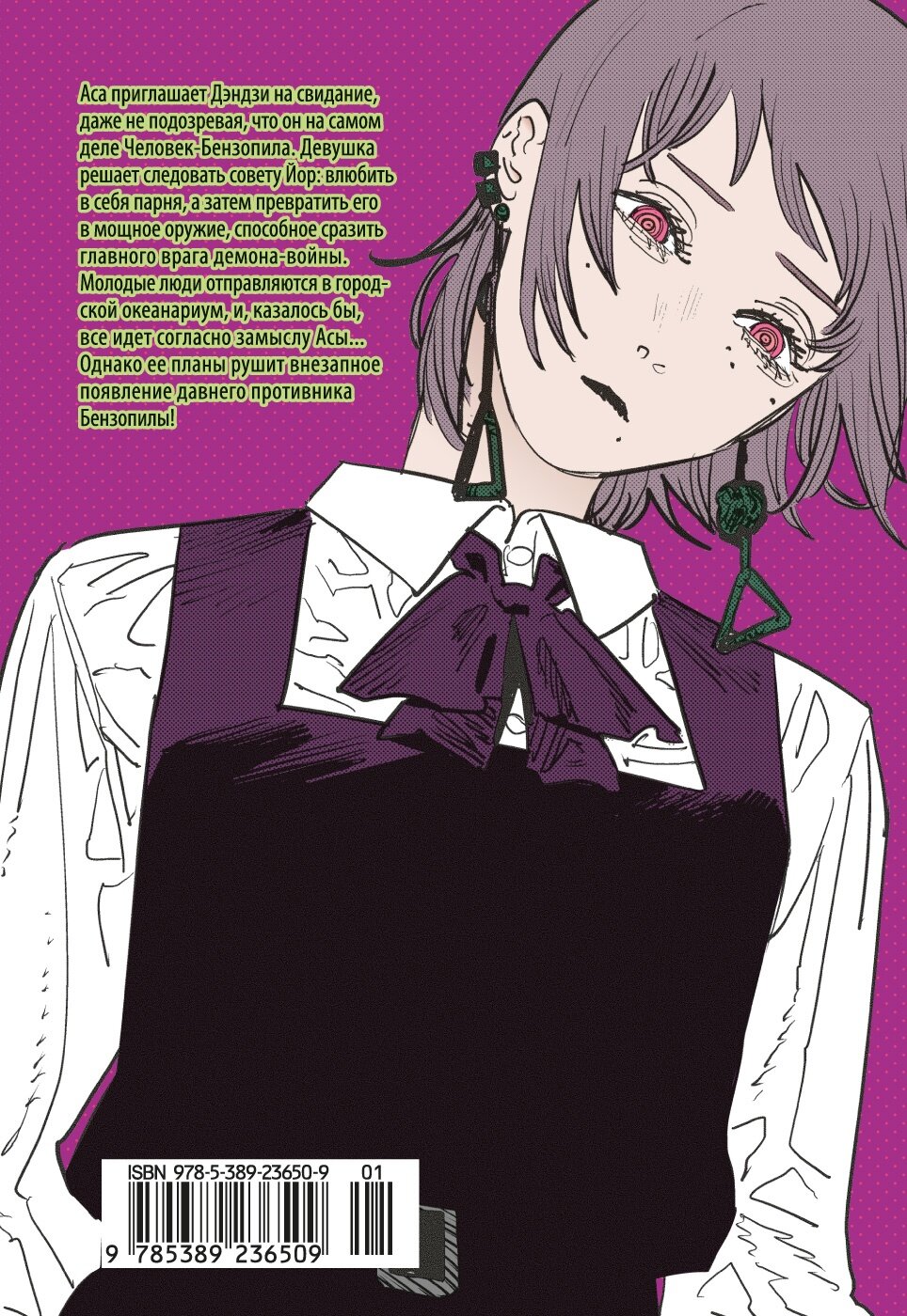 Очень "умное и интересное" свидание Дэндзи и Асы, их "звёздный ужин", самый лучший персонаж данной арки - пингвин, и всё неугомонные попытки сделать из нашего "пса" на коротком поводке отличное оружие - всё это в новом томе популярной манги Человек-Бензопила. Безумно ждал продолжения развития отношений главных героев, нового экшна, постепенного раскрытия новых персонажей, которых автор плавно вводит в сюжет, да и просто обычного Фудзимотовского стиля, который понравится всем читателям безумных произведений)