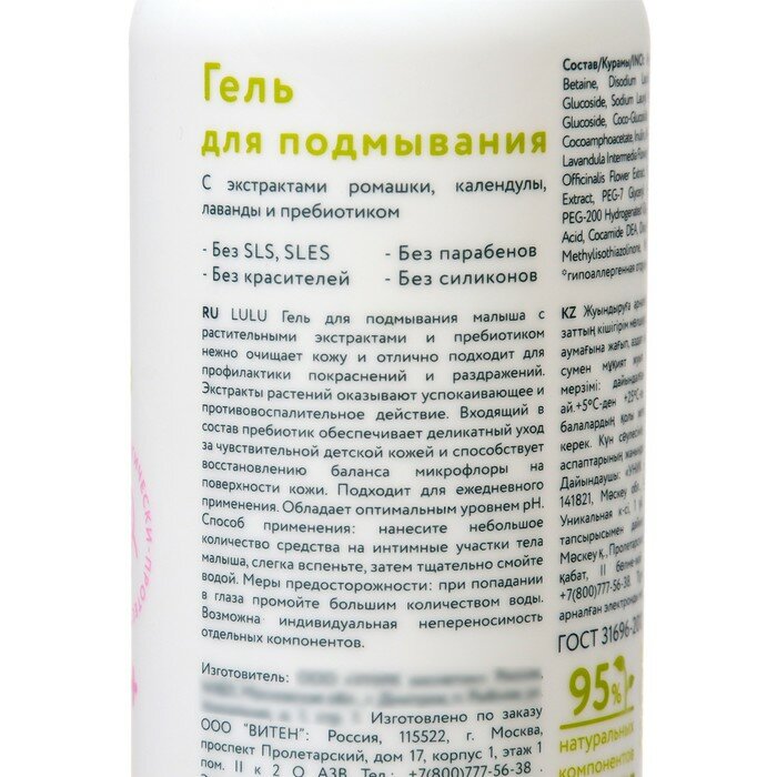 Гель для подмывания Lulu с экстрактами ромашки календулы лаванды и пребиотиком 300мл УНИК КОСМЕТИК